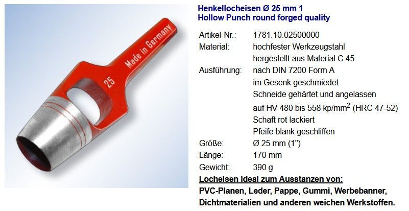 Locheisen rund Ø 25 mm Henkellocheisen Planen Werbebanner LKW Plane Banner