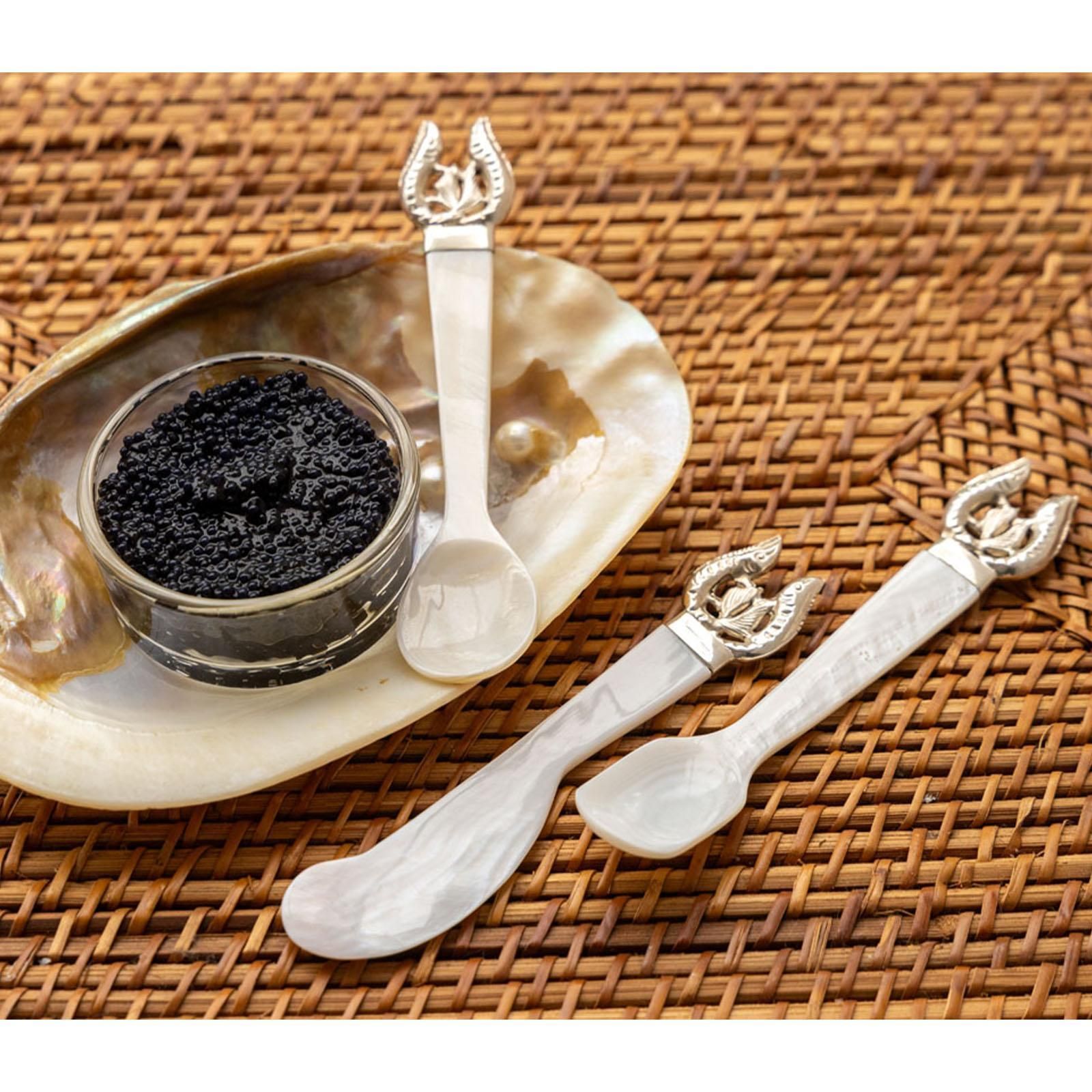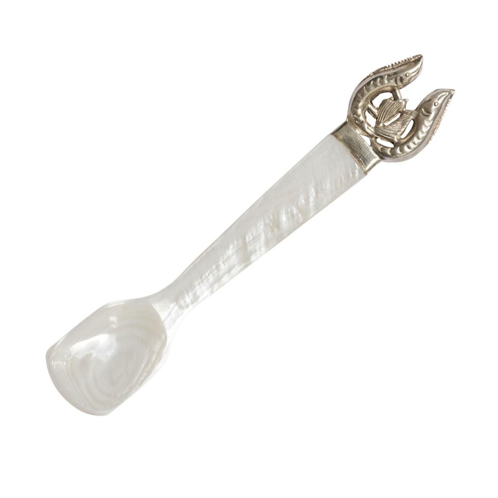 Löffel 13.5 cm Perlmutt Fisch Motiv versilbert Kaviarlöffel Teelöffel Eierlöffel