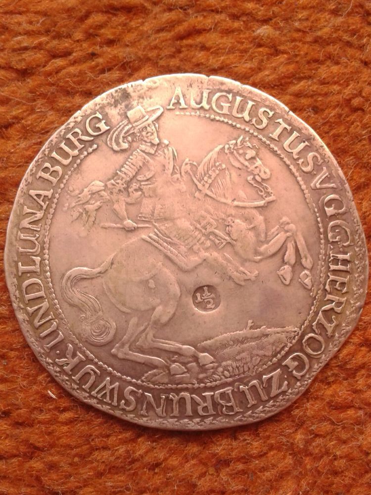 Löser 1664 zu 1 1 2 Taler Braunschweig Lüneburg August der Jüngere Zellerfeld, August zu Pferde, 5 fach belemtes Wappen; 42,16 g, 62mm KM 450.4; Dav. LS 77; We. 773; Fiala 336, Hks., ss kein Papyal, nur Vorkasse oder Selbstabholung gegen Barzahlung Bei Fragen: