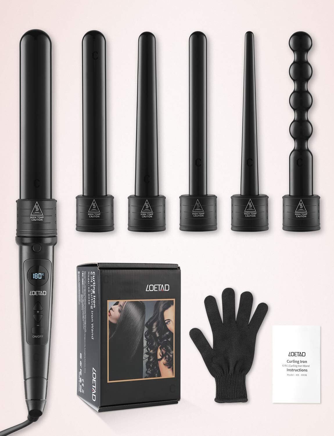 LOETAD 6 in 1 Professioneller Lockenstab aus Keramik mit 6 austauschbaren