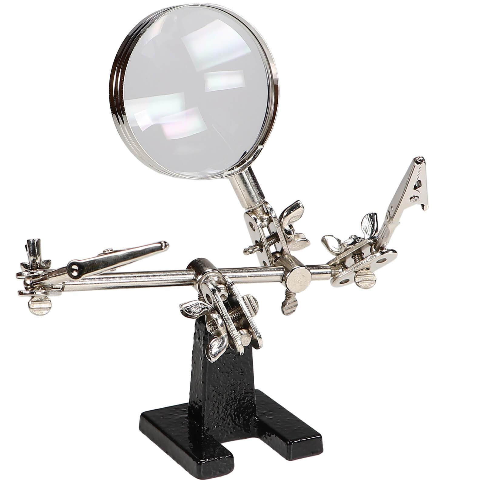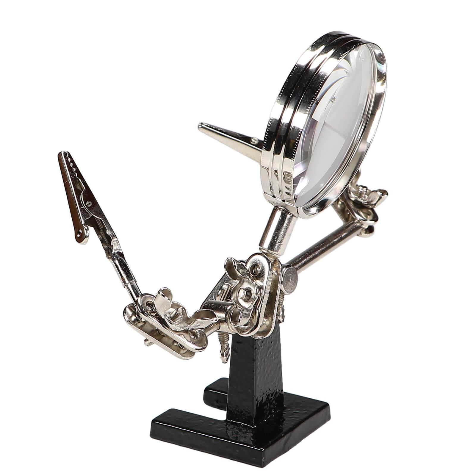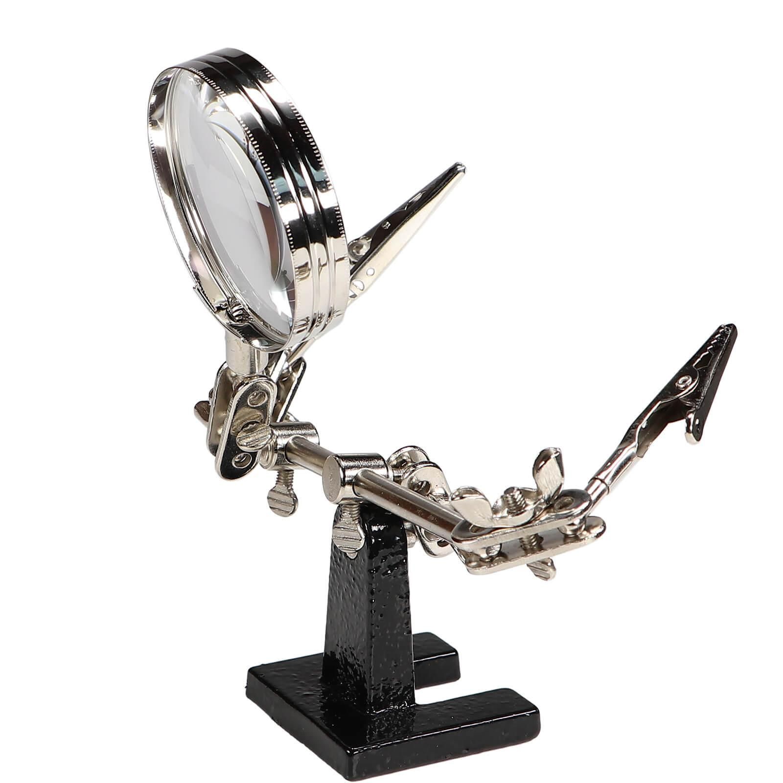 Löthilfe Dritte Hand mit 4-fach Glas Lupe 62mm und Krokoklemmen Platinenhalter