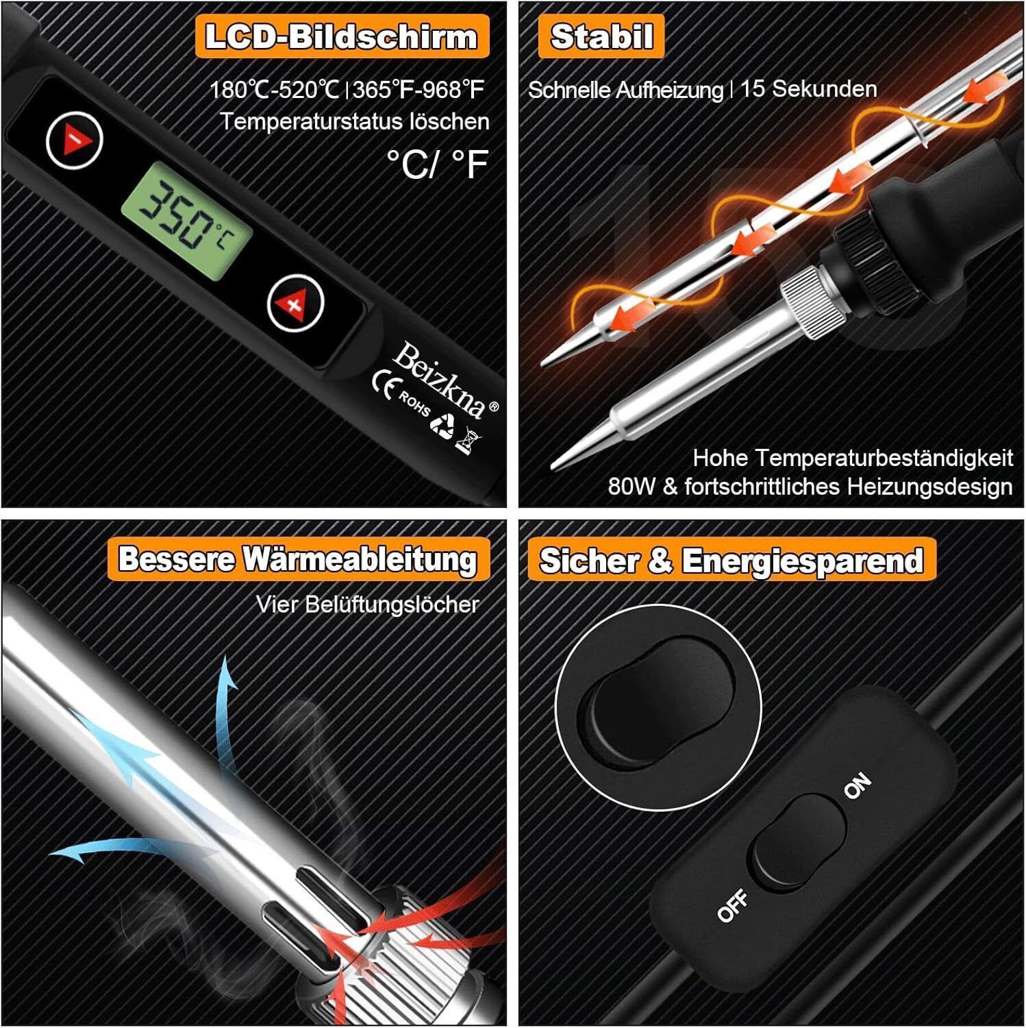 Lötkolben Set 80W LCD Einstellbar Temperatur 180-520°C Lötkolben mit Ein/Aus