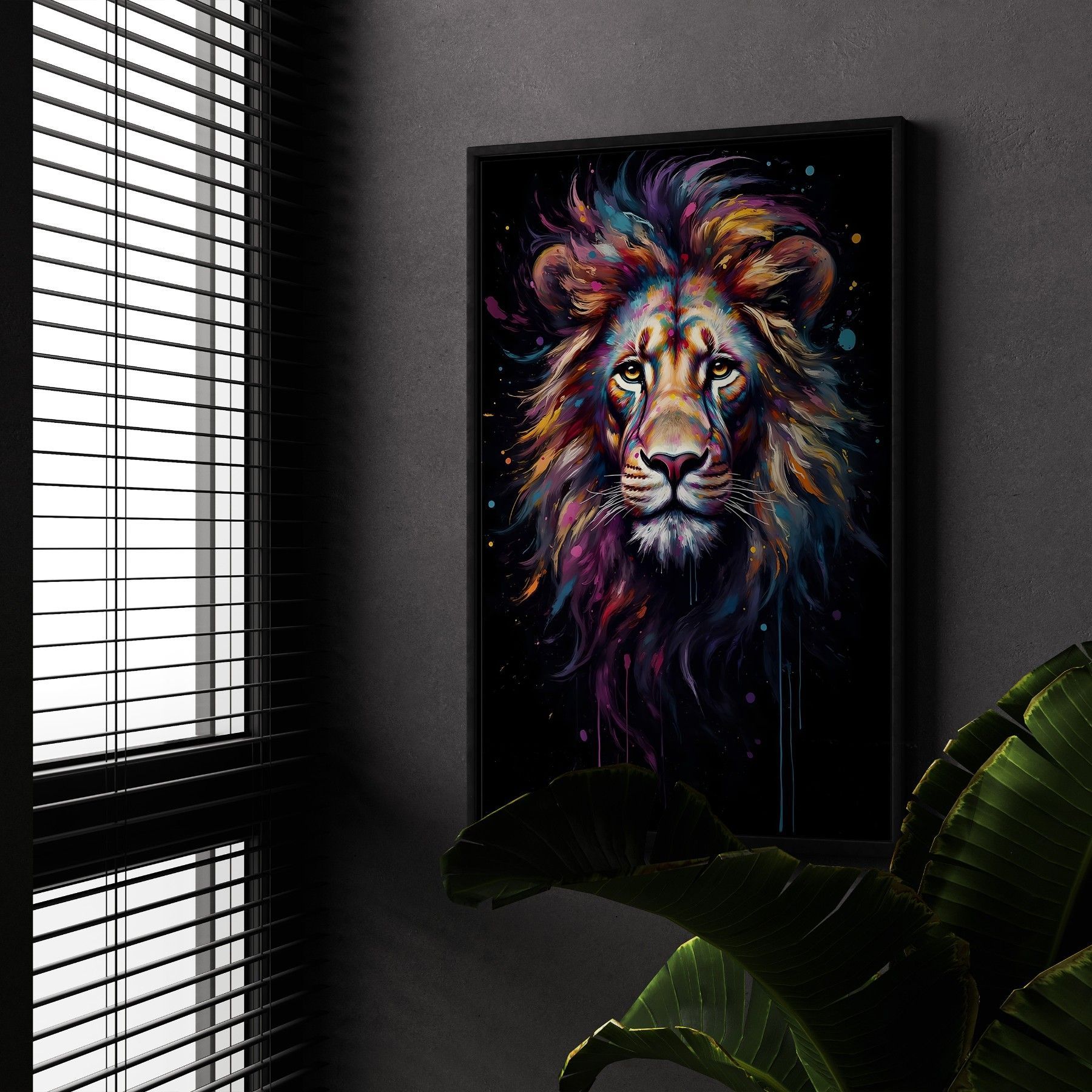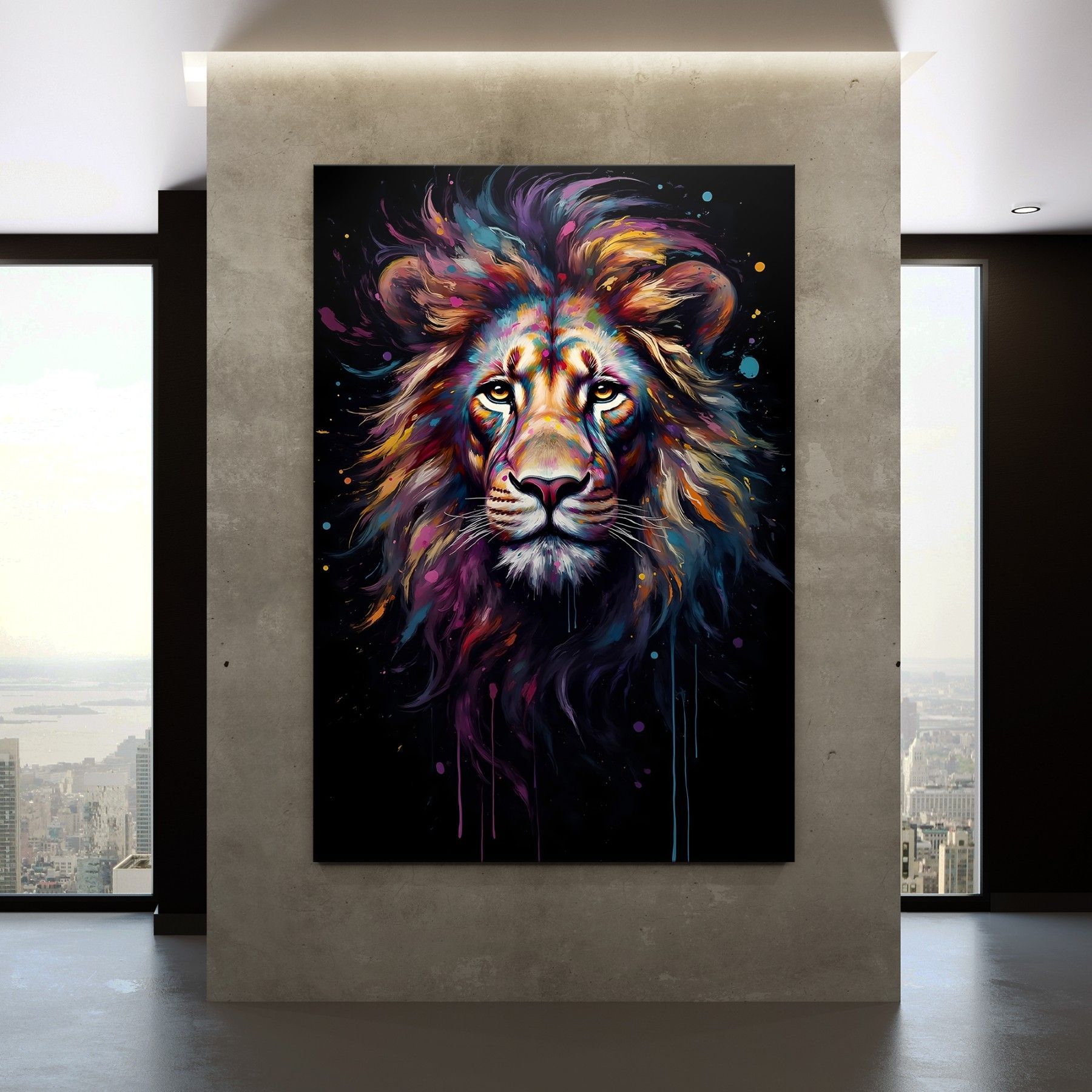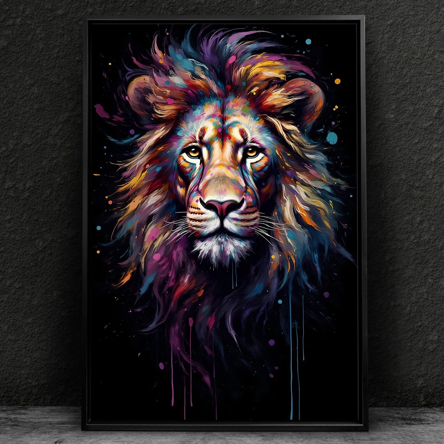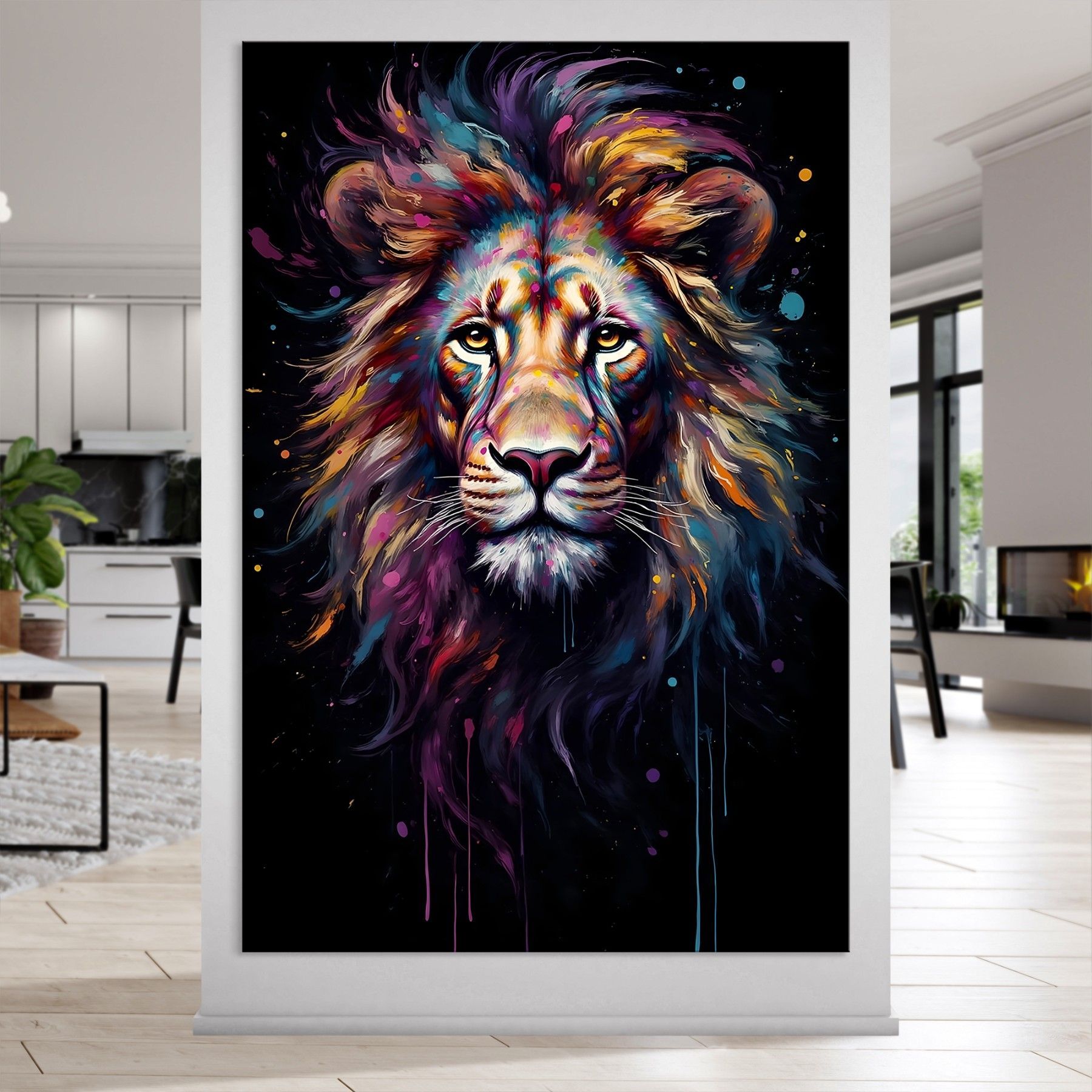 Löwe in bunten Farben Kunst, Tier Wandbild Leinwand, Acrylglas, Poster Deko Nr2