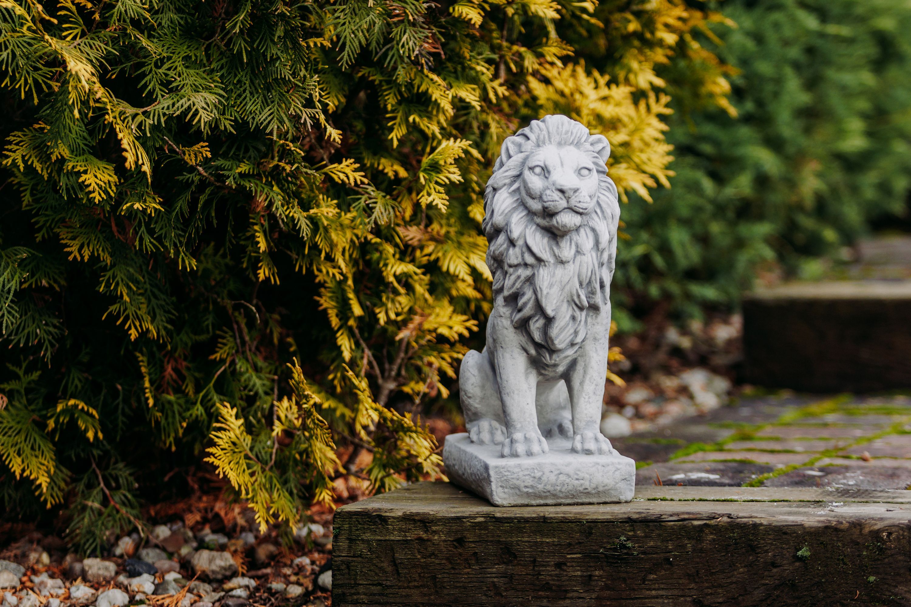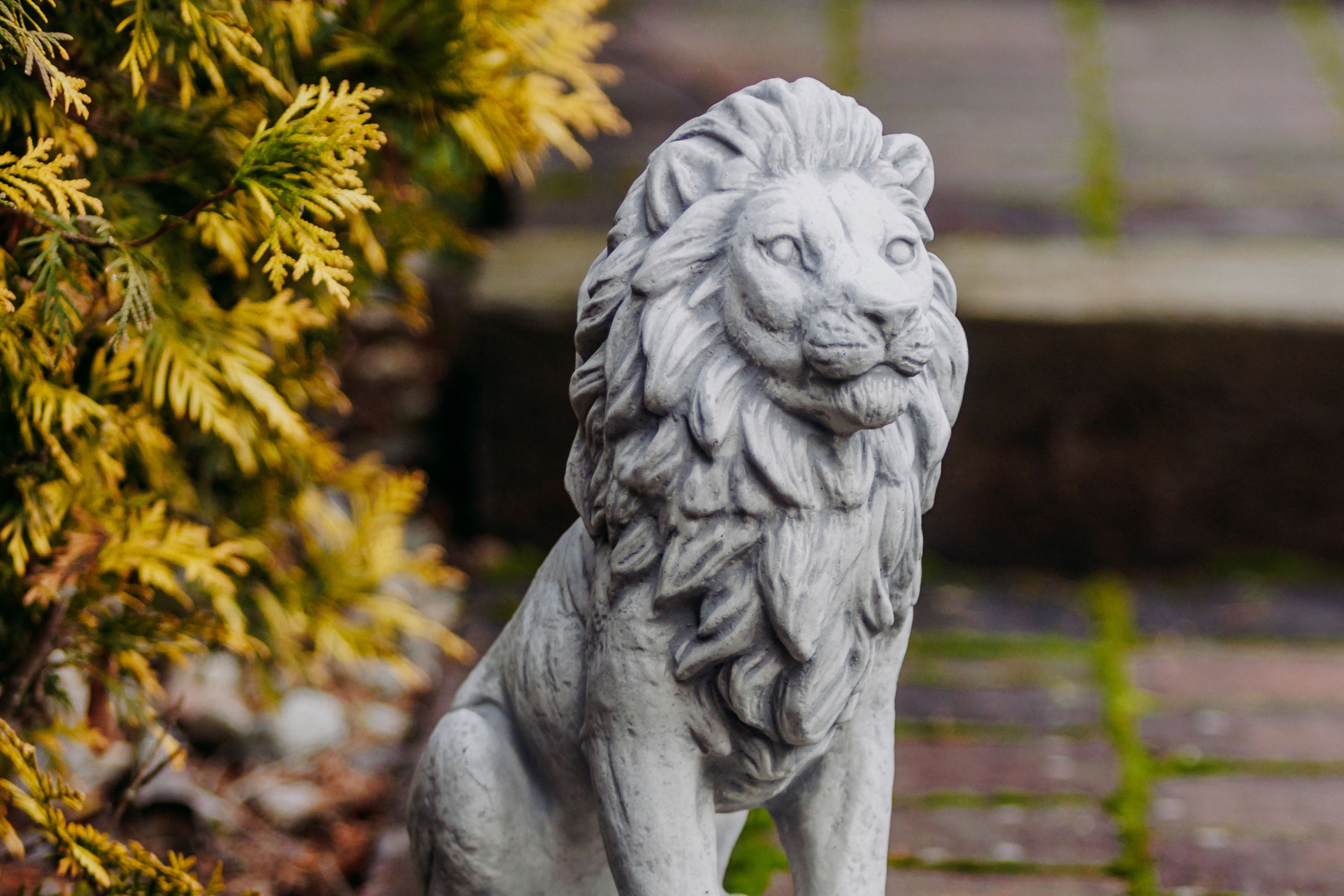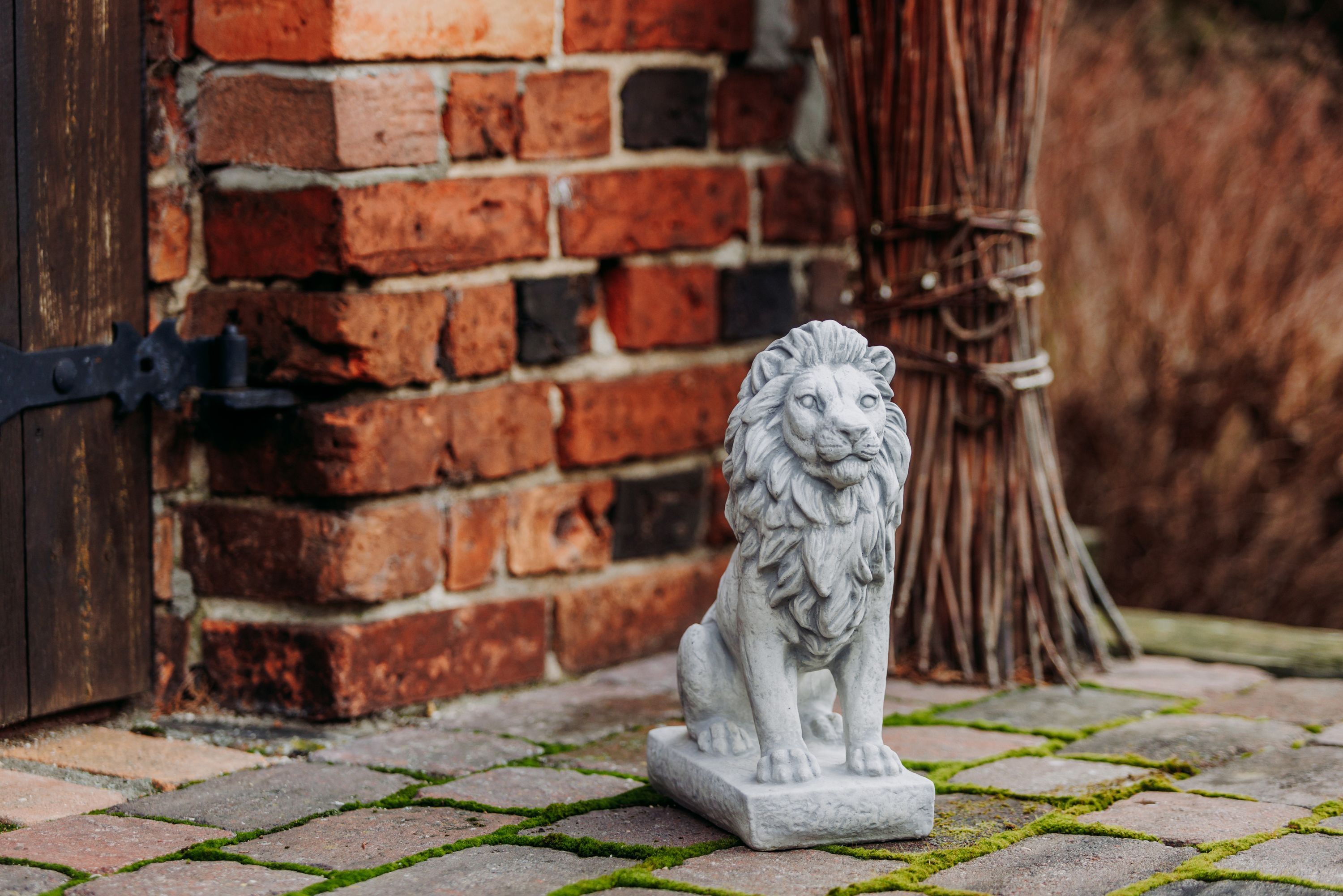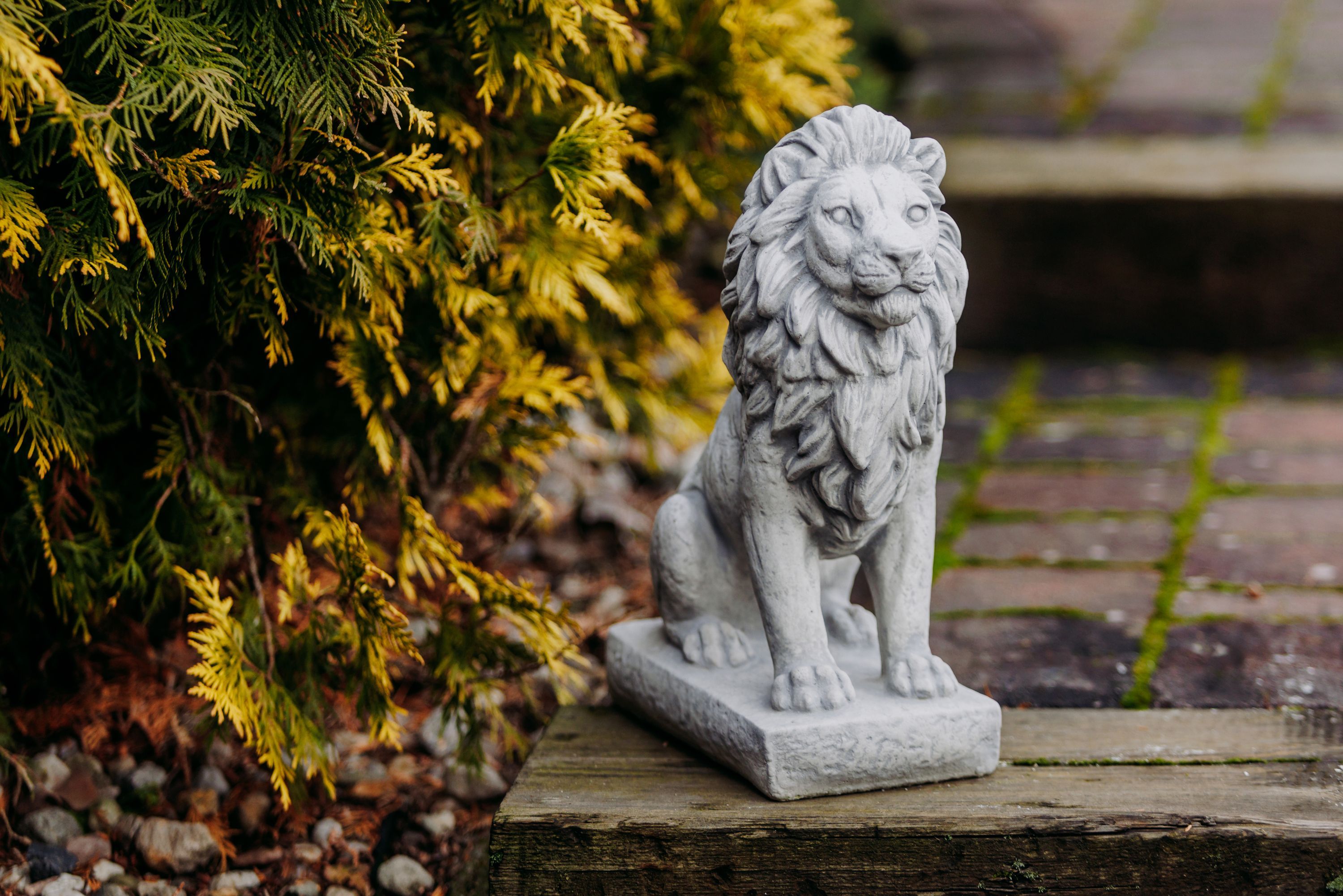 Löwe mit Blickrichtung mitte H. 34 cm, 25 x 14 cm, 10 kg Steinguss frostsicher
