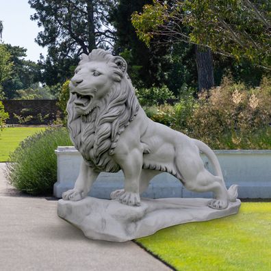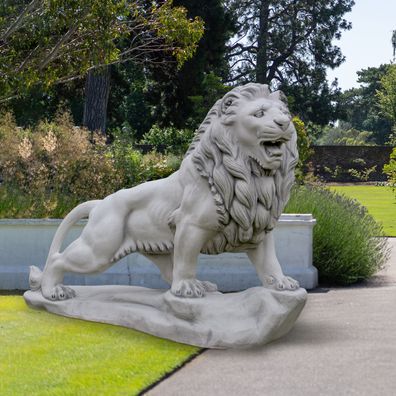 • Massive Steinfigur Großer Löwe Leo Blickrichtung mittig aus Steinguss frostfest