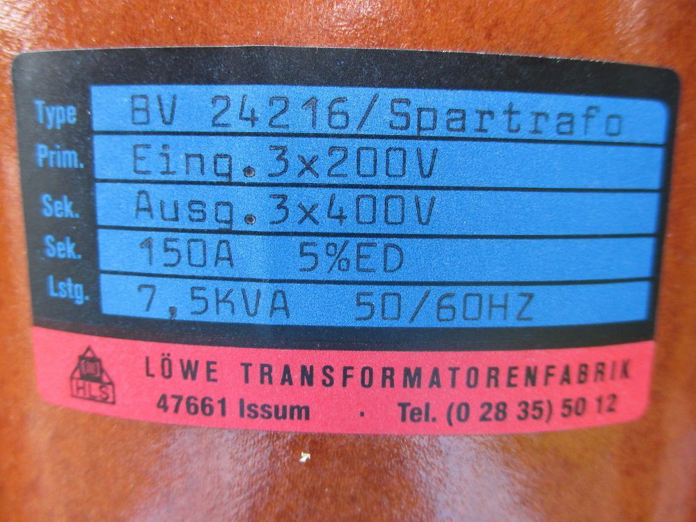 LÖWE Spartrafo Trafo BV24216 Pri 3x200V Sec 3x400V 150A 7,5 KVA T15/3