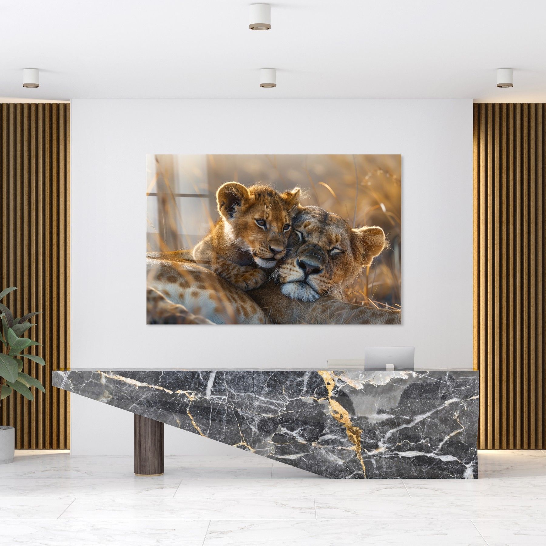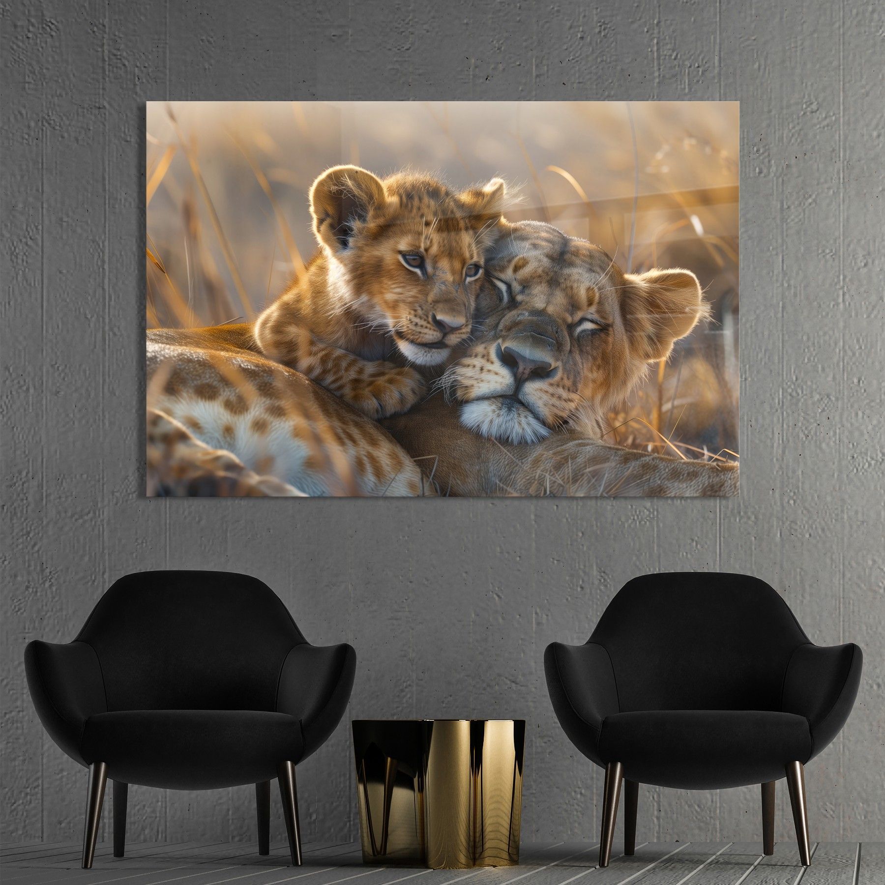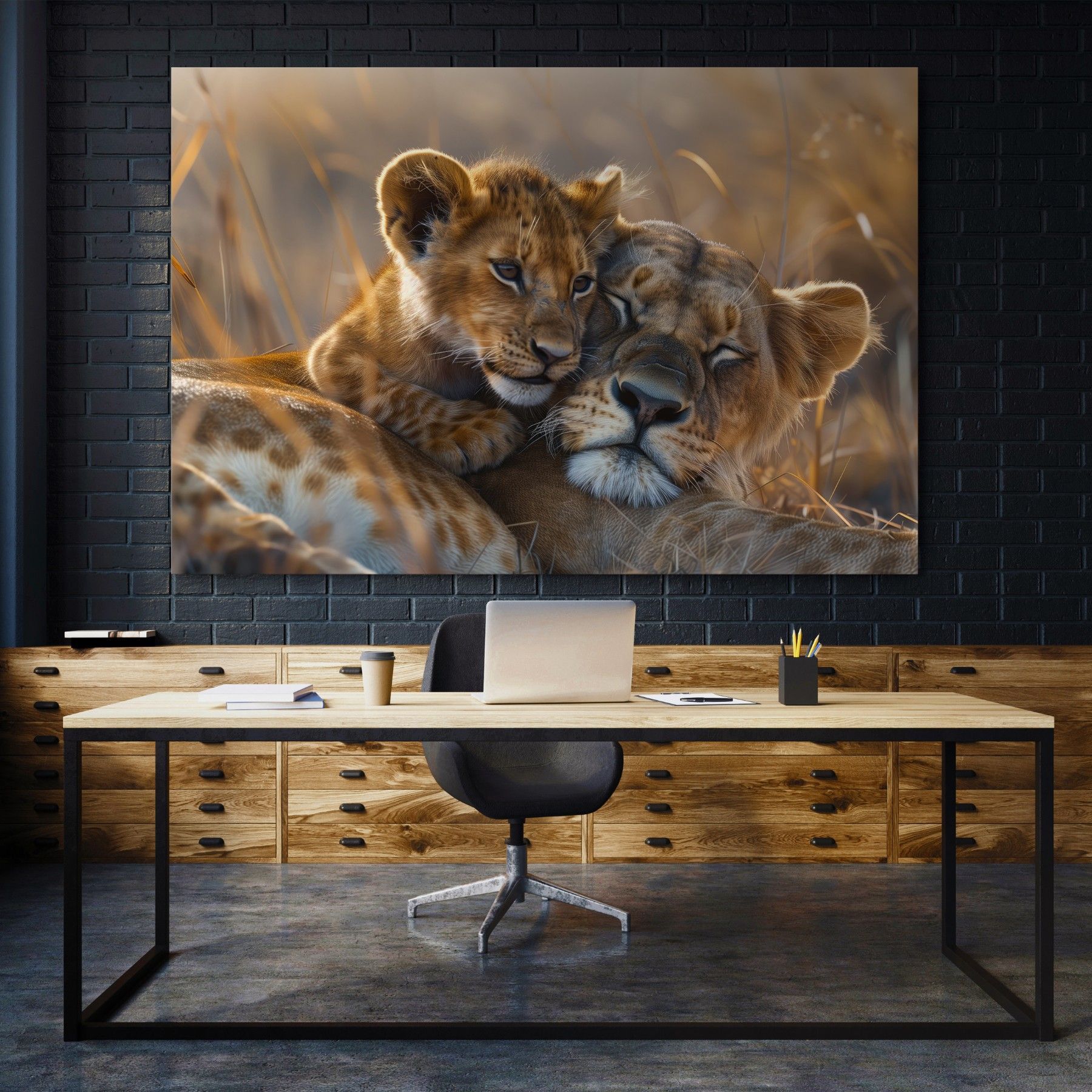 Löwenfamilie, Tierliebe Kunst, Tier Bild Wandbild Leinwand, Acrylglas oder Poster