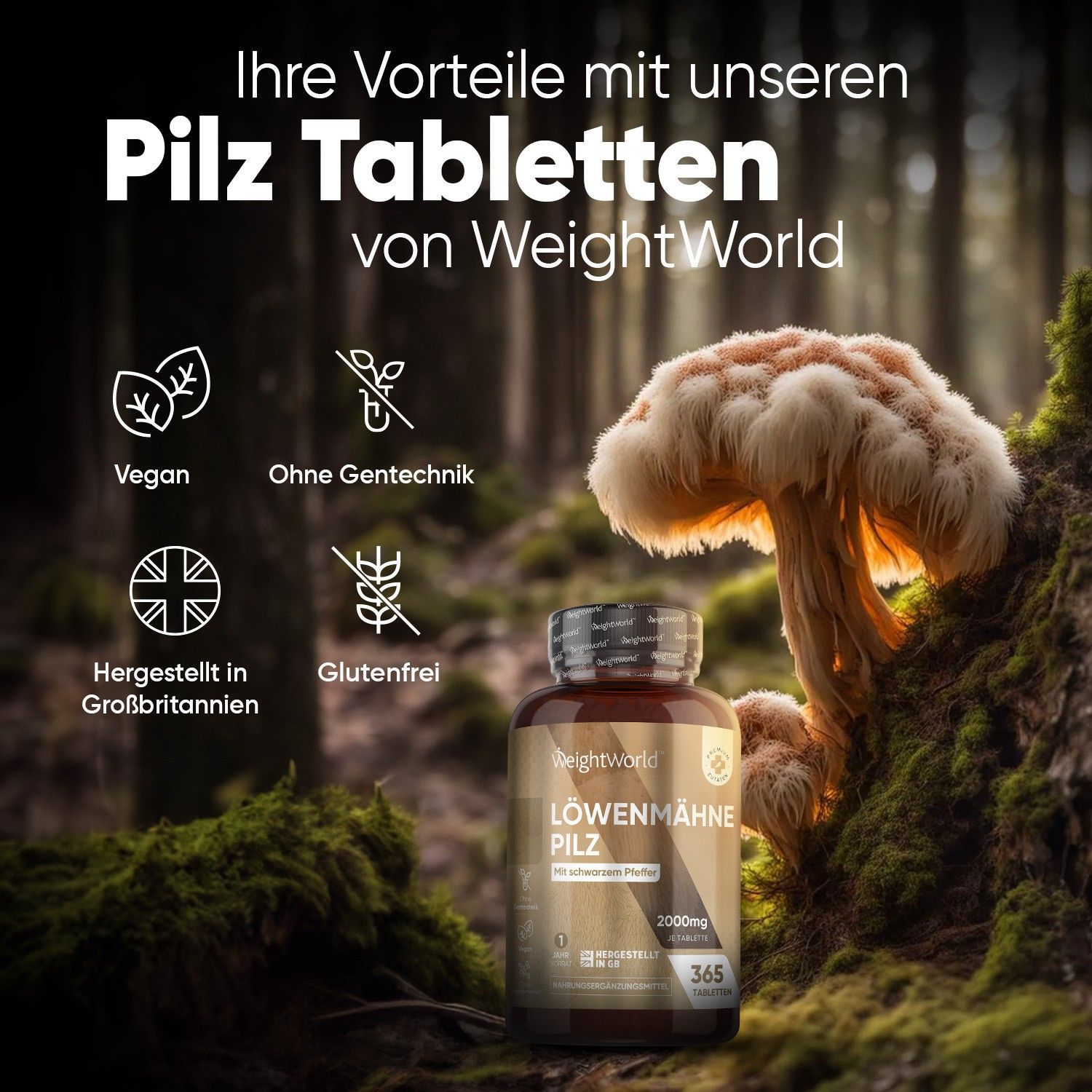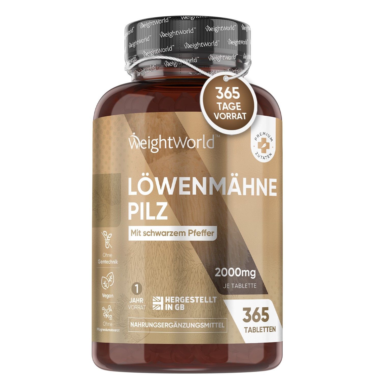 Löwenmähne Pilz 365 Tabletten - 2000mg je Tablette - WeightWorld