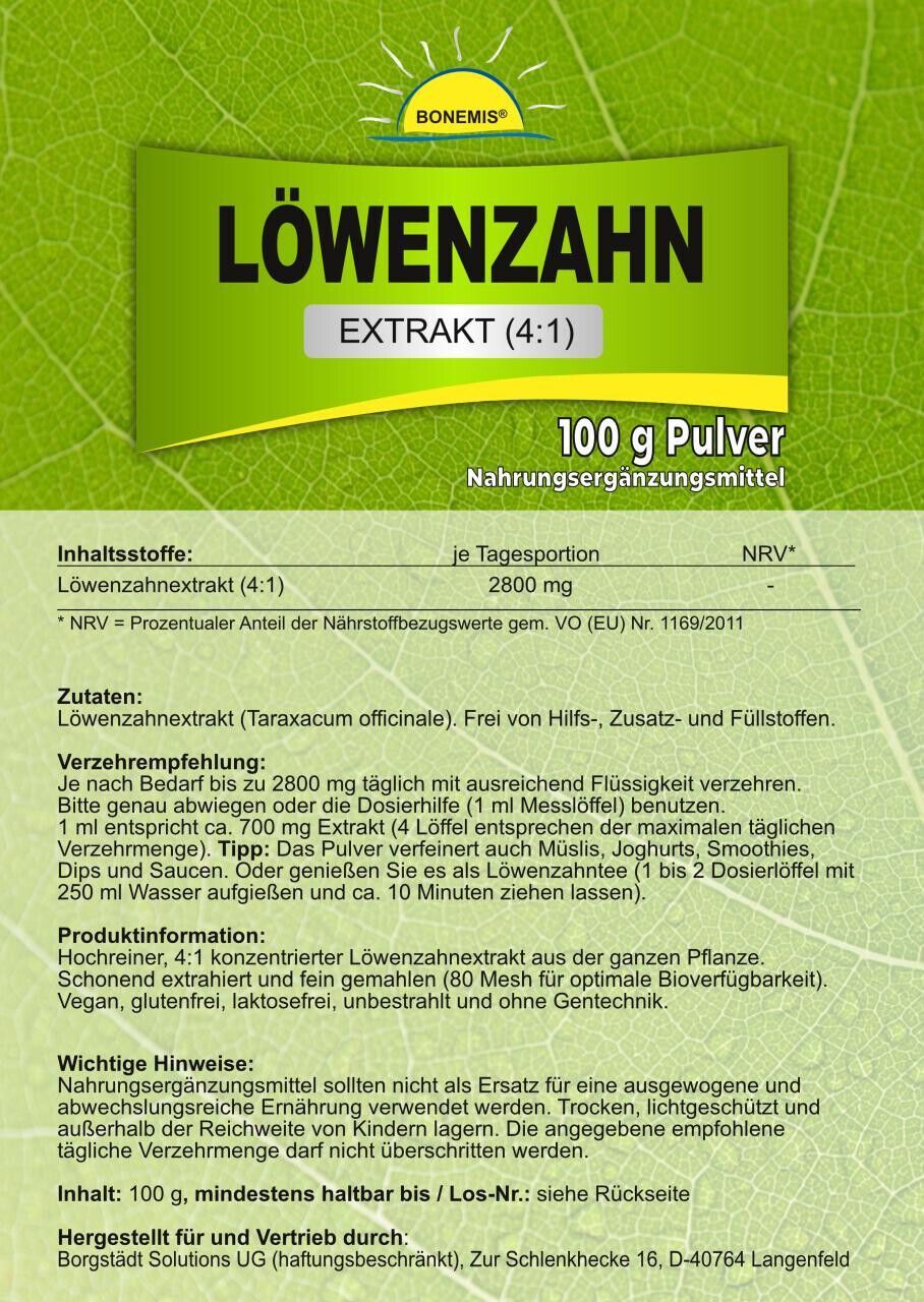 Löwenzahnextrakt (4:1), Premiumqualität ohne Zusätze, 100 g im Beutel, Bonemis®