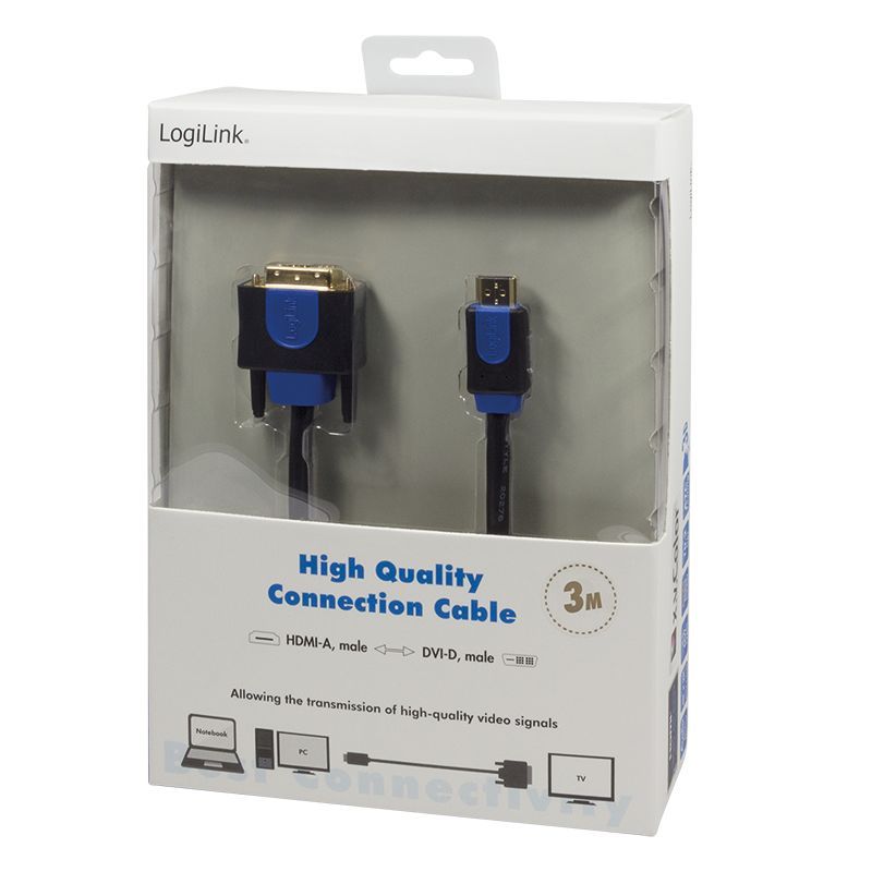 LogiLink LogiLink HDMI Kabel zu DVI vergoldet schwarz/blau 3 m