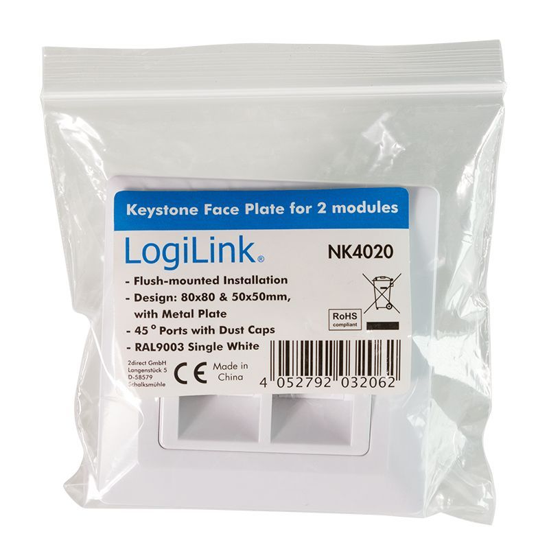 LogiLink LogiLink Keystone Unterputzdose für 2 Keystone Module 45° signalweiß (1er Softpack)