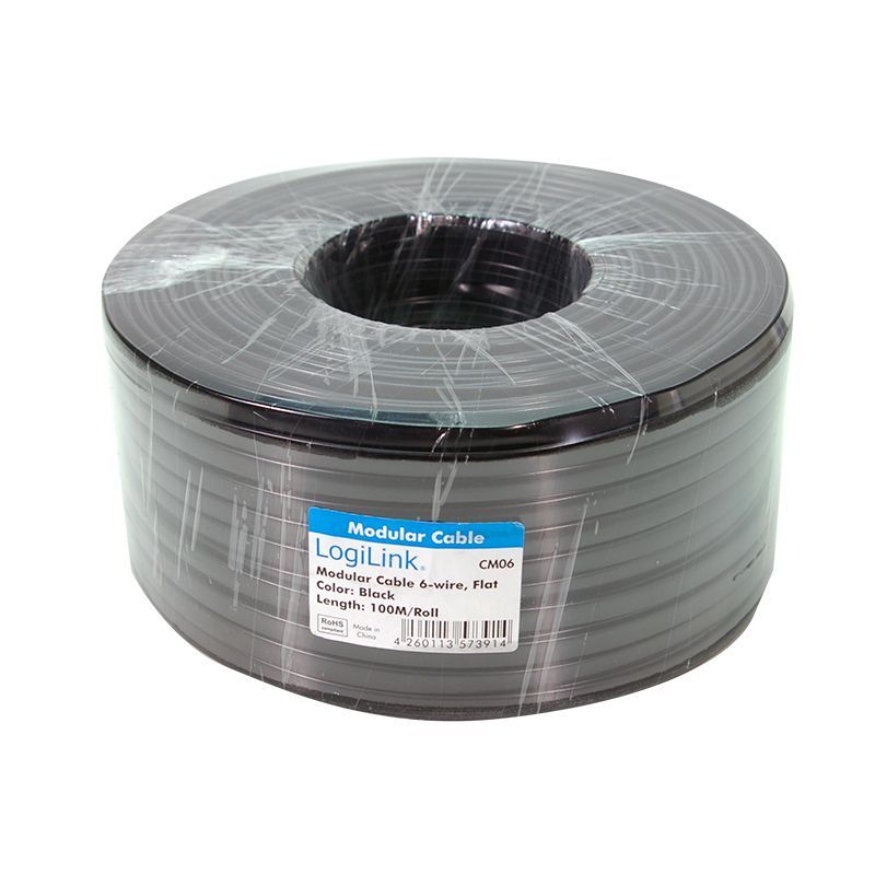 LogiLink LogiLink Telefonkabel flach 6 Adrig schwarz 100 m