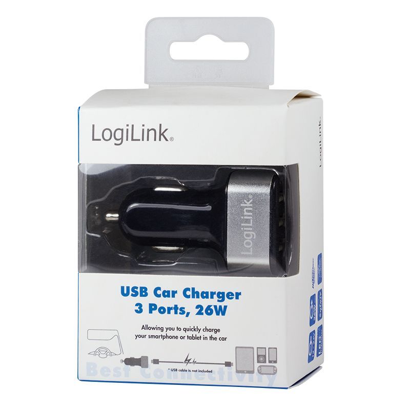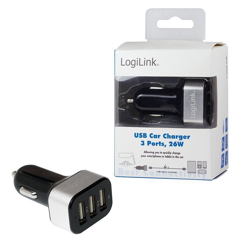 LogiLink LogiLink USB Kfz Netzteil 3 x USB Port 25,5 W schwarz/silber (1er Blister)