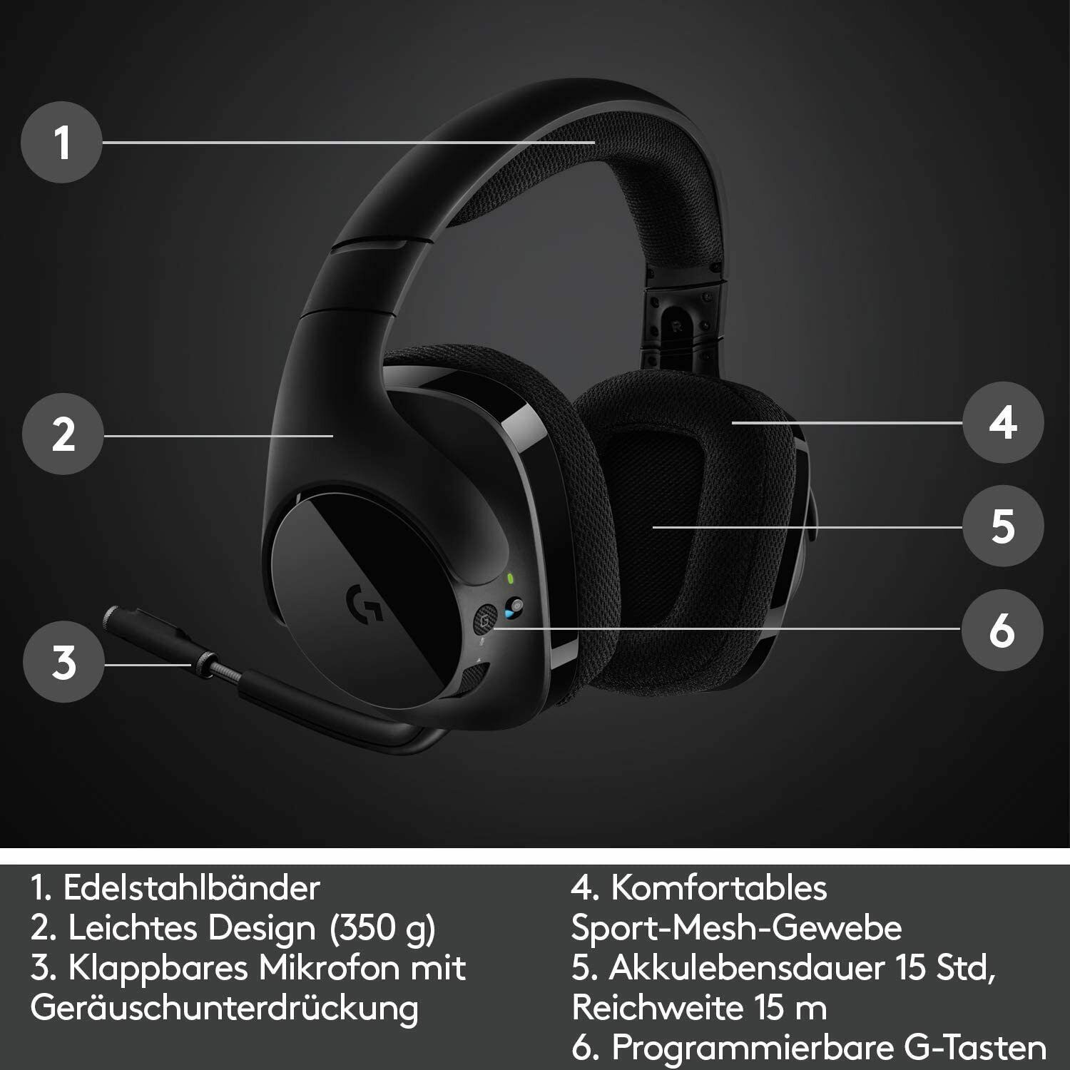 Logitech G533 kabelloses Gaming-Headset, 7.1 Surround Sound OHNE Zubehör, NV2