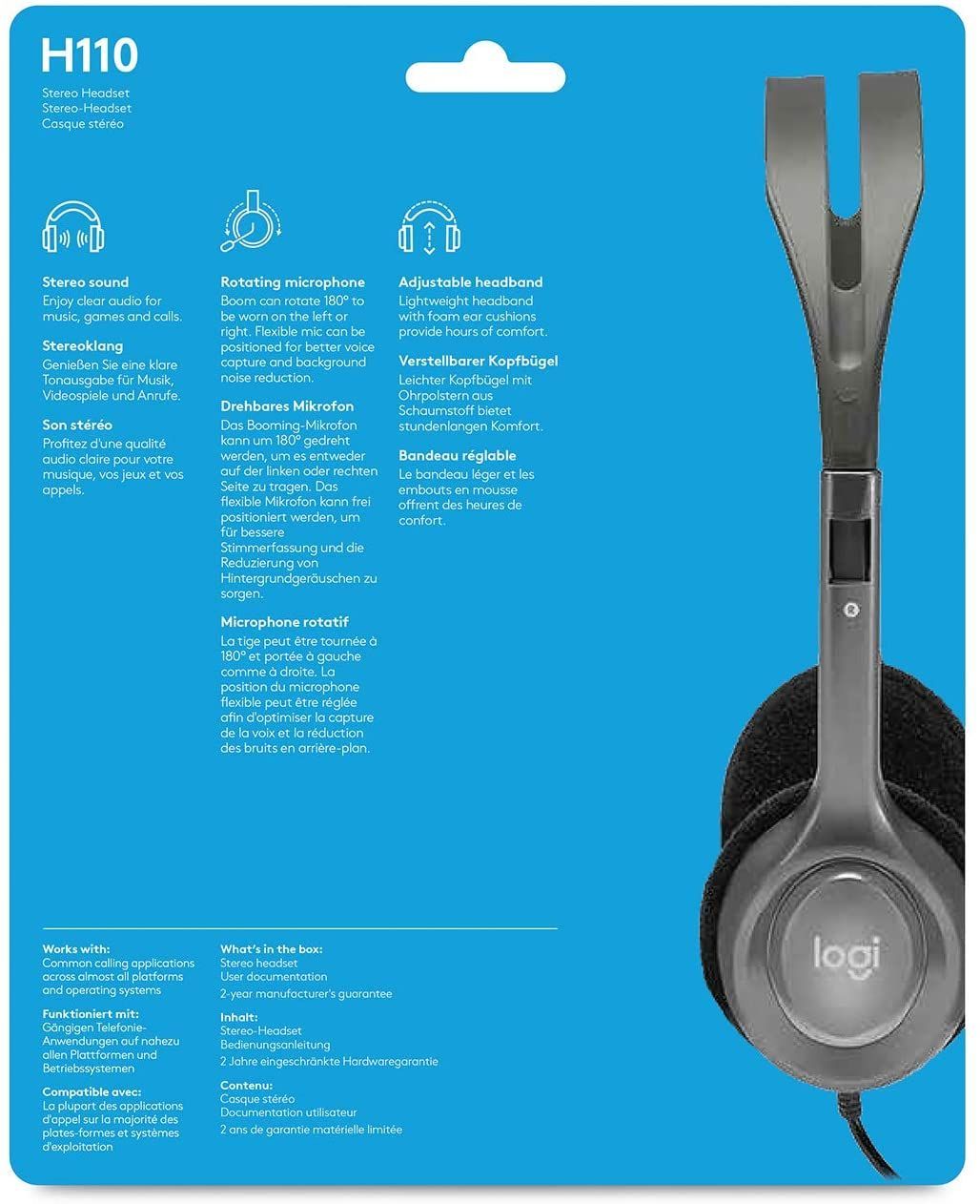 Logitech Logitech H110 Kopfhörer mit Mikrofon, Stereo-Headset, Verstellbares Mikrofon