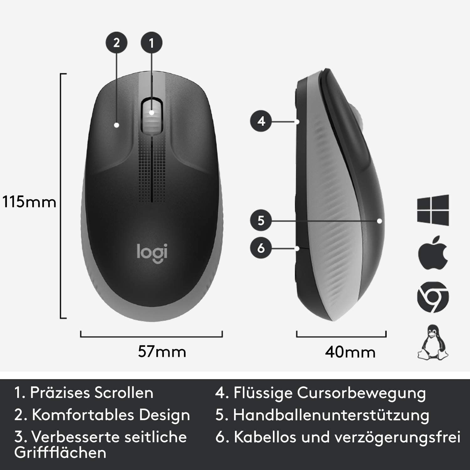 Logitech Logitech kabellose Maus M190, geschwungenes Design für beidhändige Nutzung