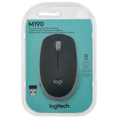 • Logitech M190 Full-size wireless Mouse charcoal (910-005905)
