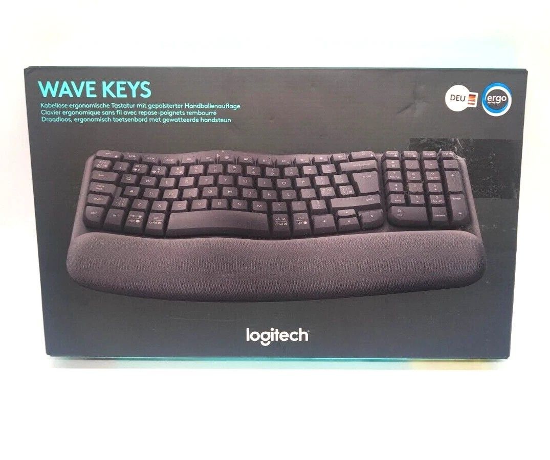 LOGI-WKDE-GRNW - Logitech Wave Keys Ergonomische Tastatur + Bolt - Graphite QWERTZ DE Zustand: Neuwertig Lieferumfang: Logitech Wave Keys Tastatur inkl. OVP, USB-Bolt Empfänger, Layout: QWERTZ - Deutsch Hinweis: Die Lieferung erfolgt ohne AAA-Batterien Logitech Wave Keys for Business: Ergonomie trif... Mehr