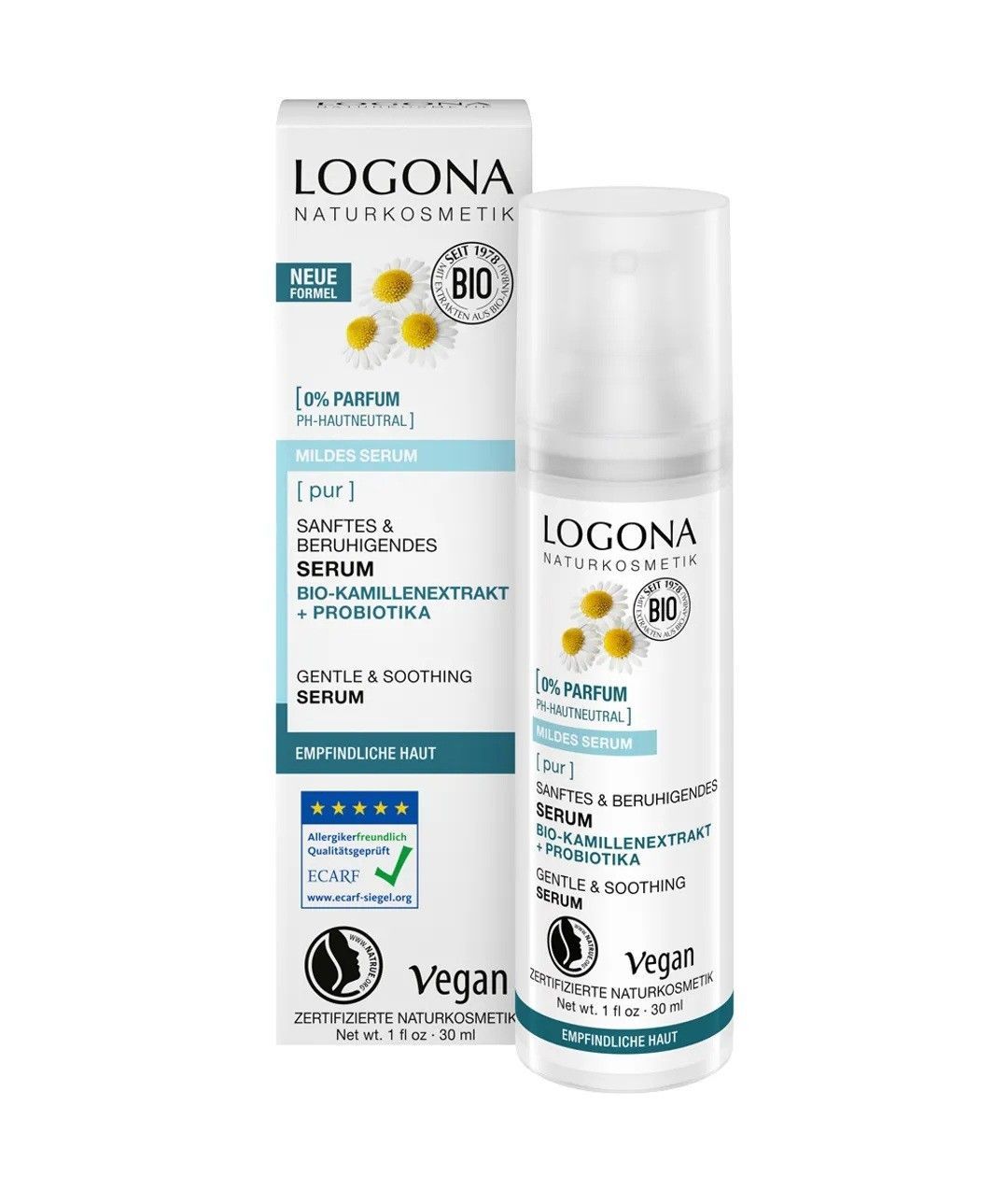 Logona Naturkosmetik - Pur Sanftes Serum - 30 ml mit Bio-Kamillenextrakt & Probiotika für empfindliche Haut
