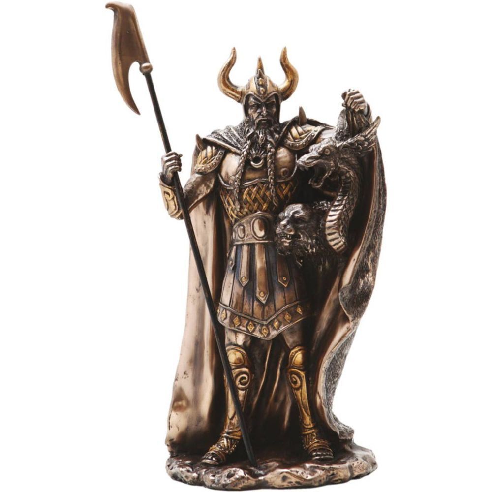 Loki stehend mit Drachenkopf by Derek W. Frost bronziert (Gr. 30cm)