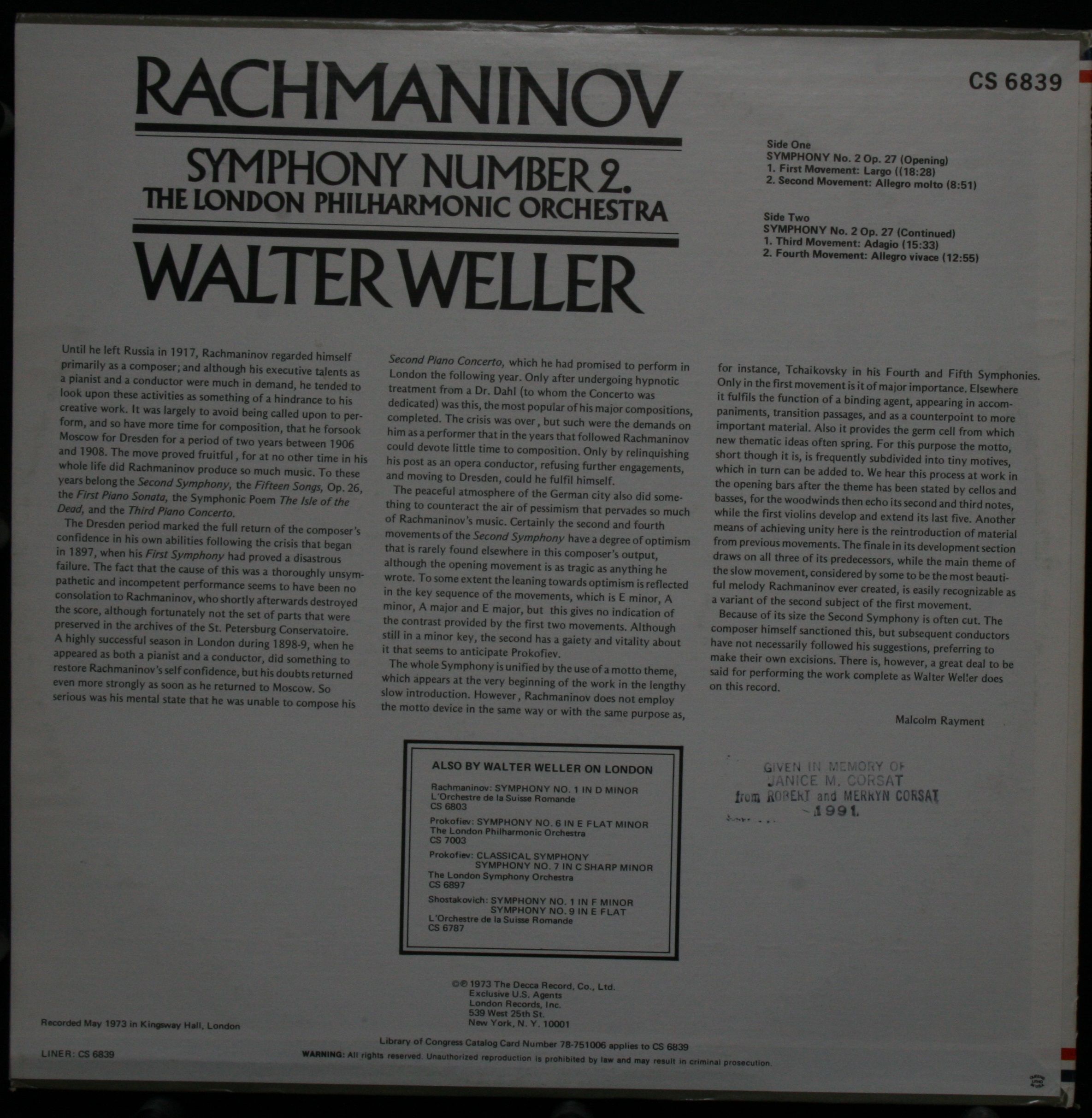 London Records CS 6839 - Sergei Rachmaninoff, London Philharmonic Orchestra, Wal