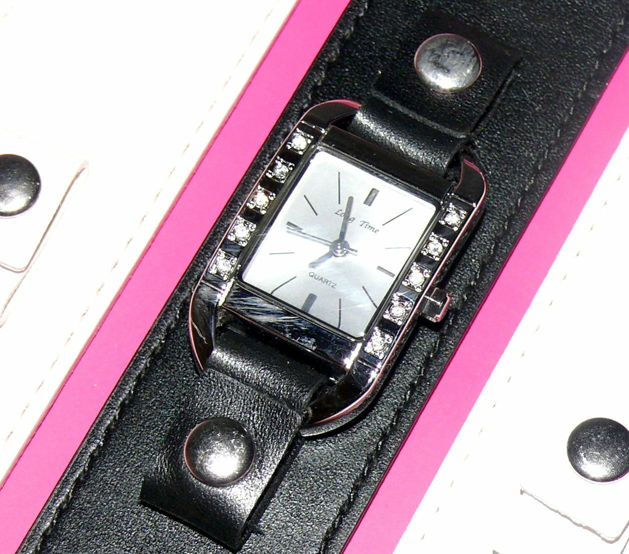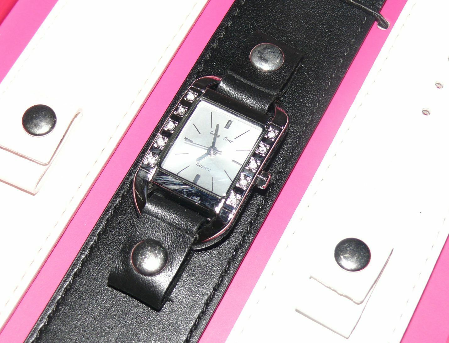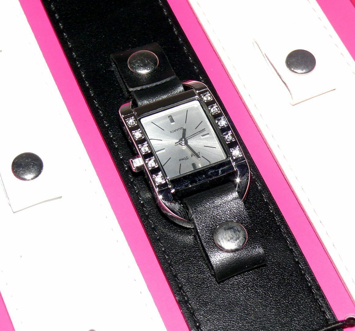 Long Time 1763556 Damen Armband Uhr Edelstahl 3x Leder Armband Black Weiß LUX