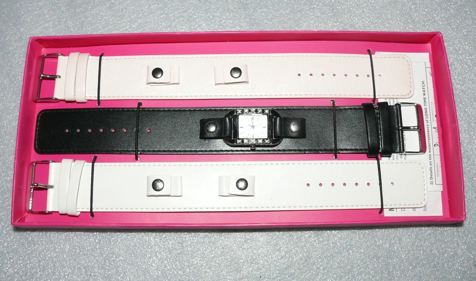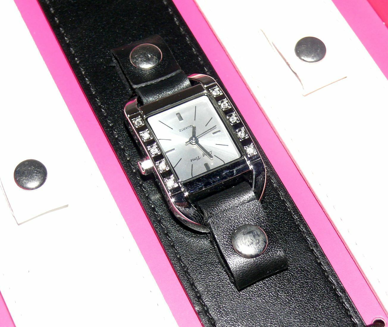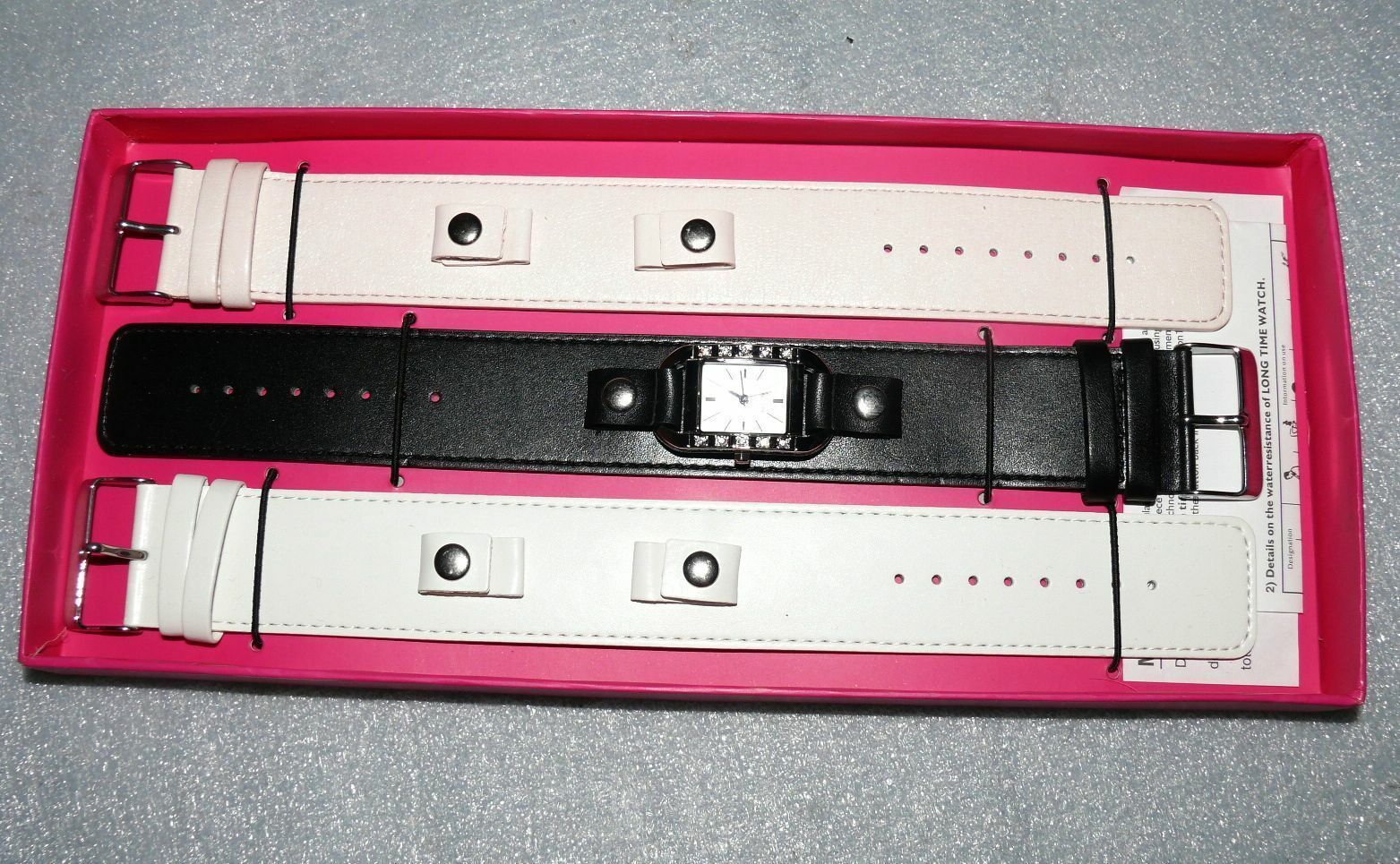 Long Time 1763556 Damen Armband Uhr Edelstahl 3x Leder Armband Black Weiß LUX