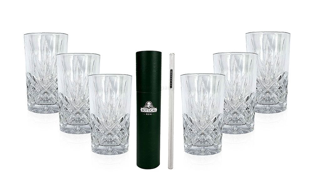 Longdrinkglas in Kristall Optik - 6er Set Gläser + 20 Stk. Botucal Glashalm / S