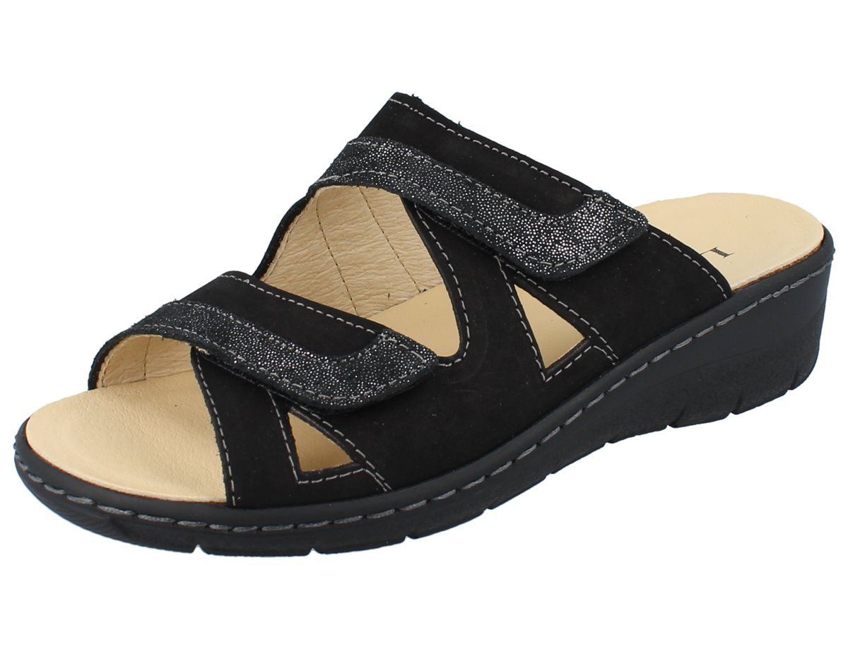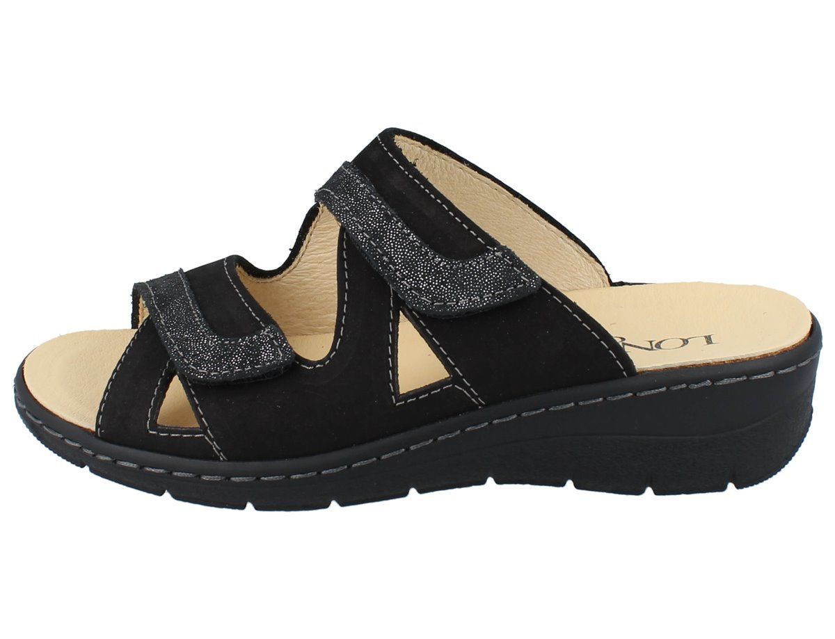 LONGO 1082227 Damen Pantolette schwarz silber/ Lede