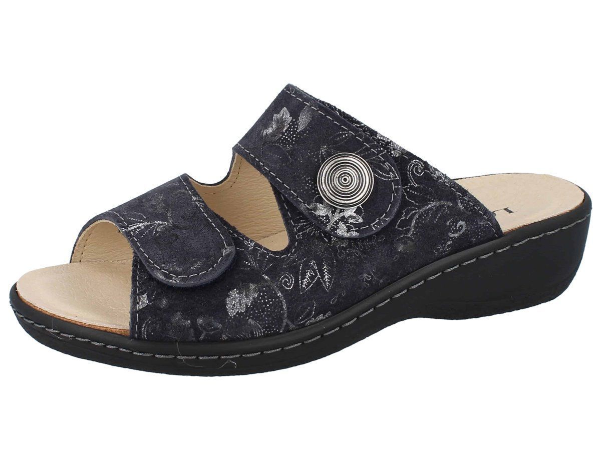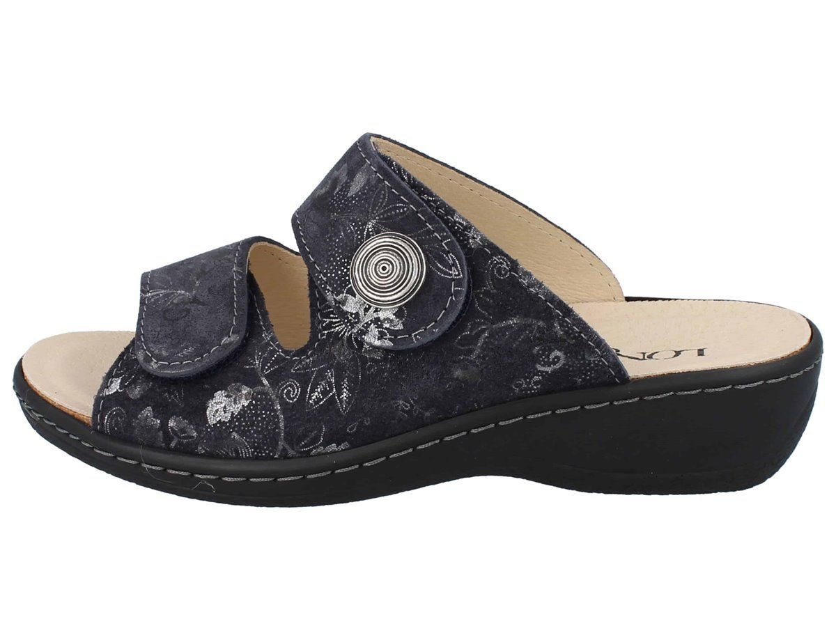 LONGO 1112541 Damen Pantolette Hausschuhe Schlüpfschuhe blau silber Nubukleder