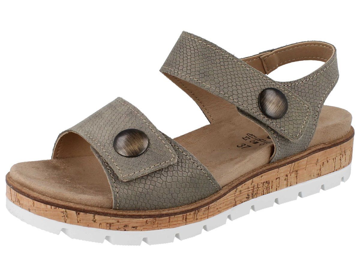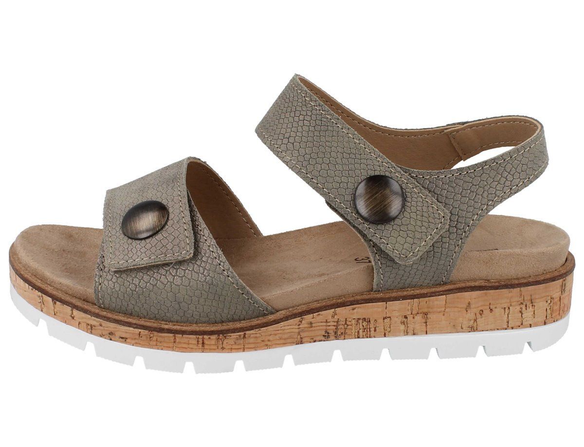 LONGO 1143588 Damen Sandale Sandalette Klettsandale khaki grün bedrucktes Leder