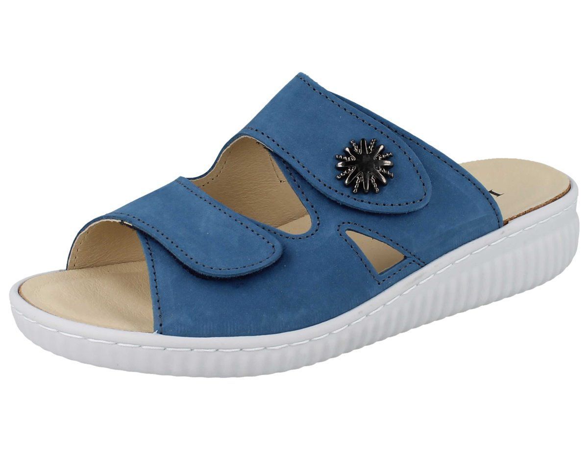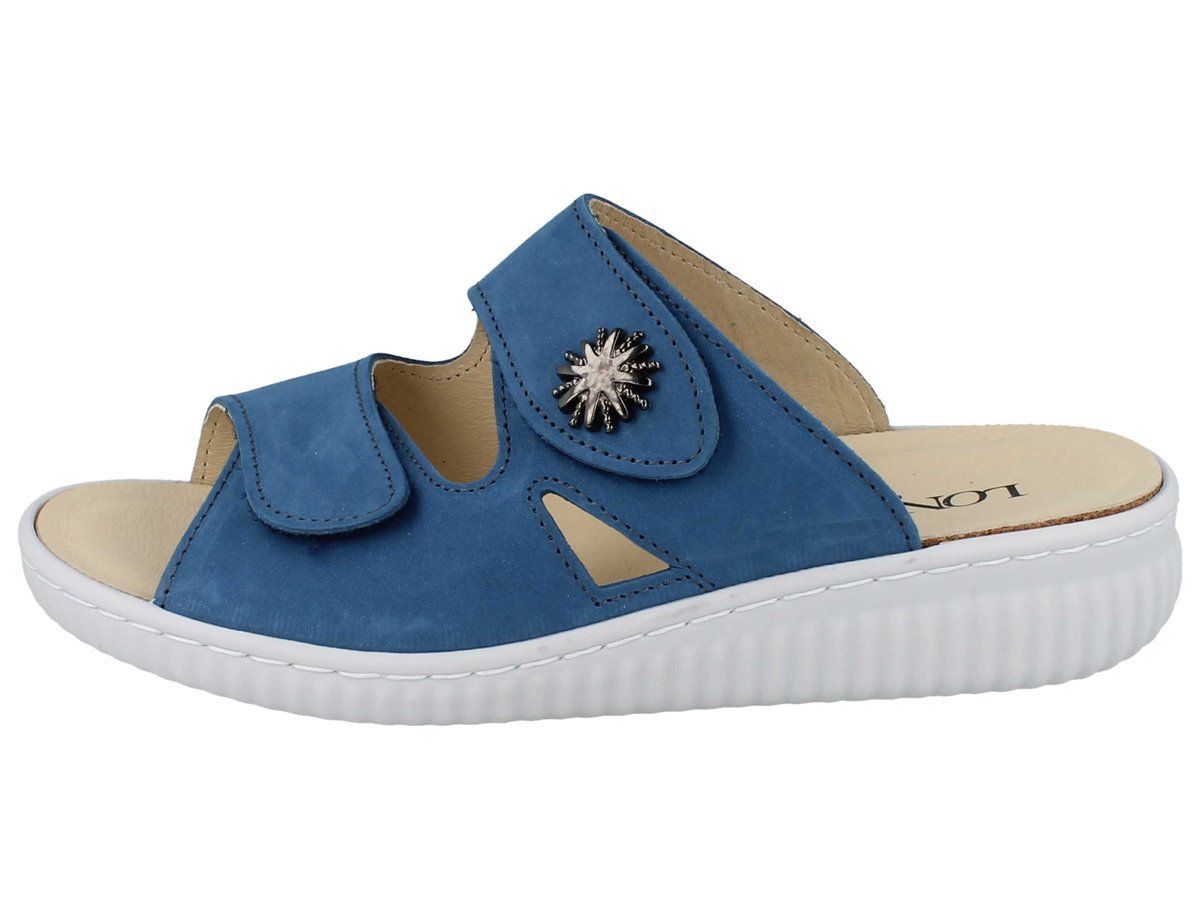 LONGO Damen Pantolette Hausschuhe Schlappen blau ciel Nubukleder