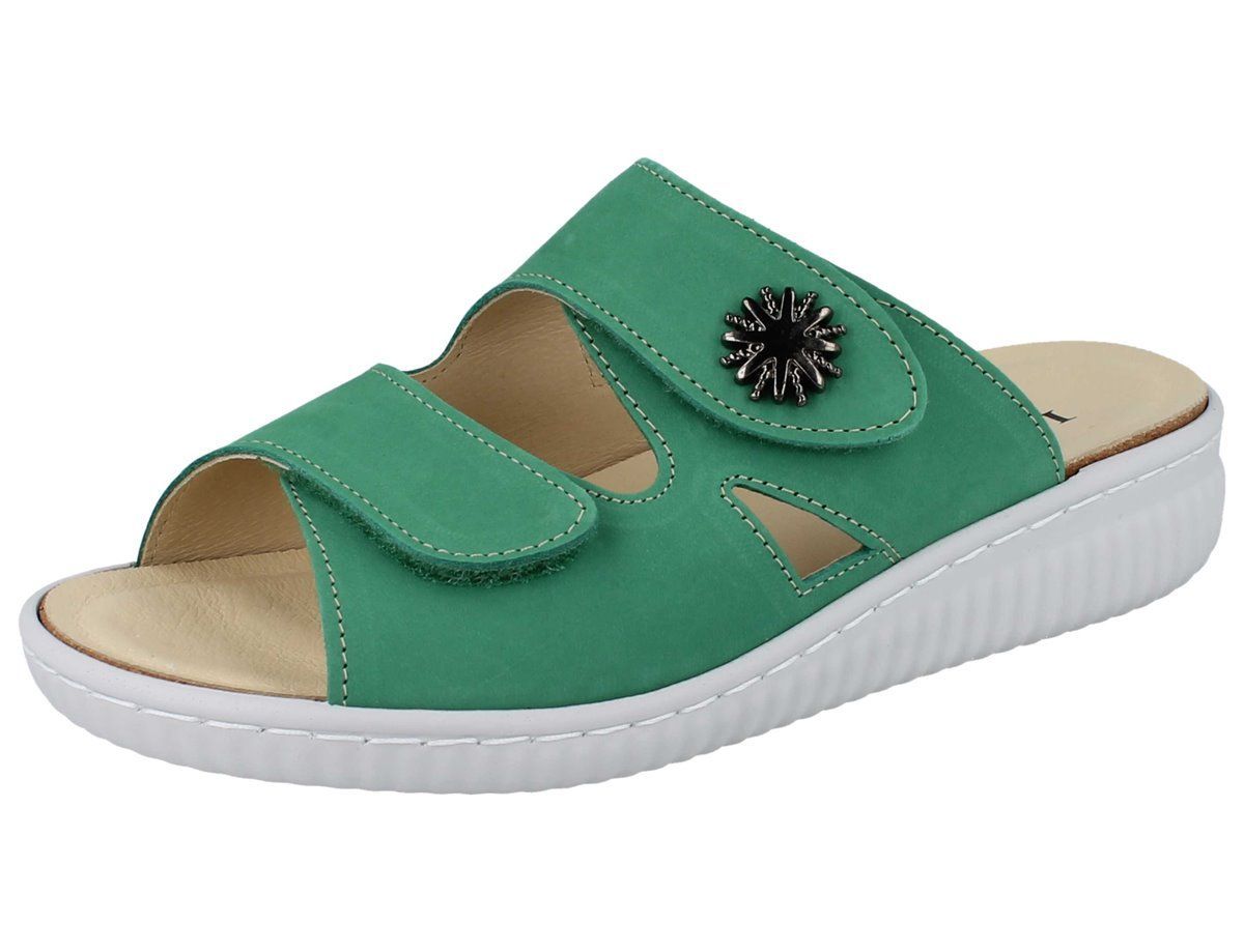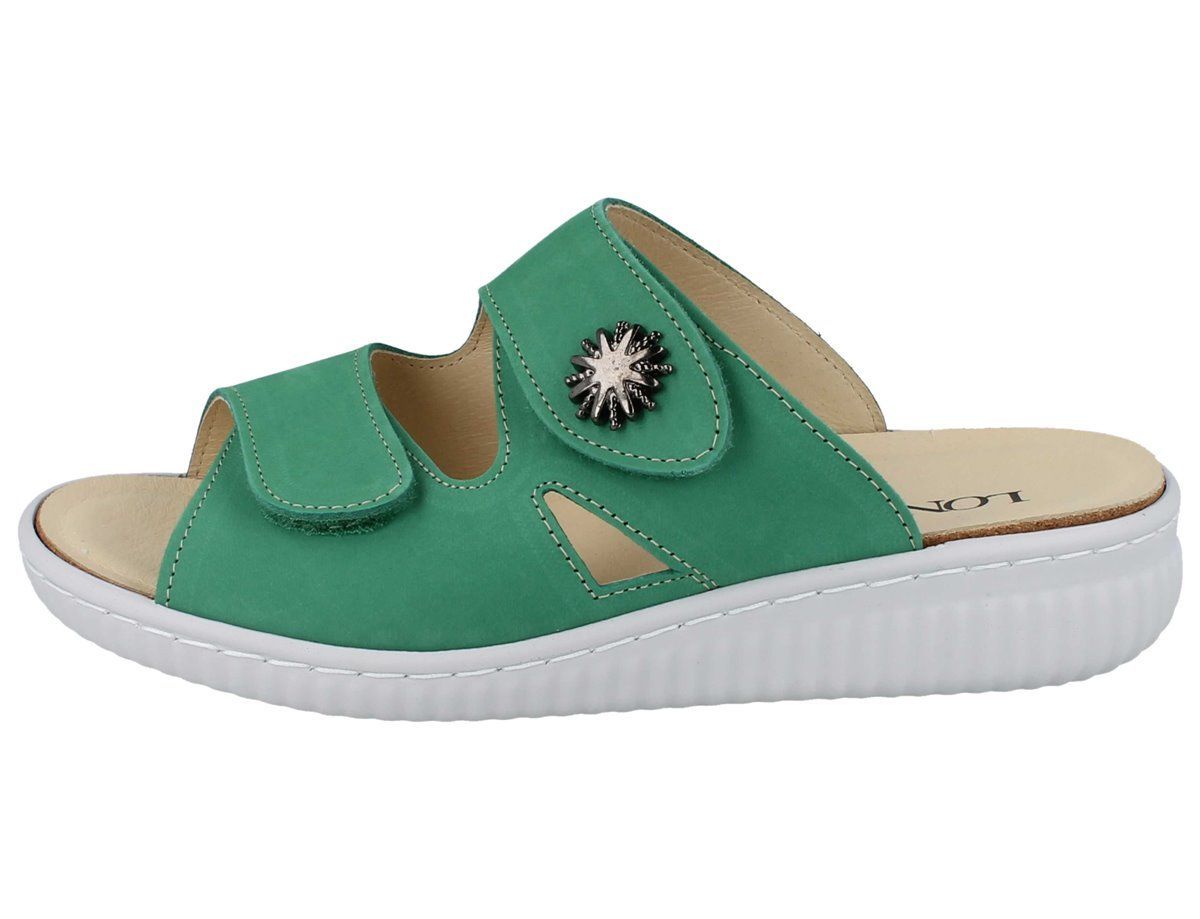 LONGO Damen Pantolette Hausschuhe Schlappen grün jade Nubukleder