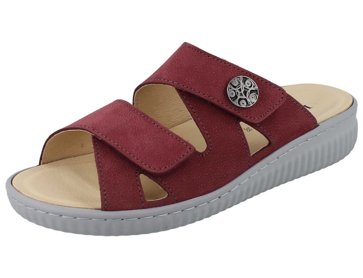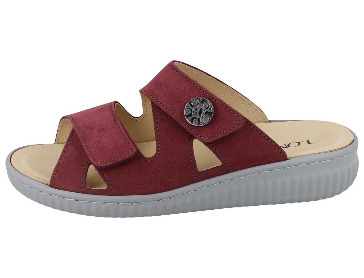 LONGO Damen Pantolette Hausschuhe Schlappen rot bordeaux Nubukleder