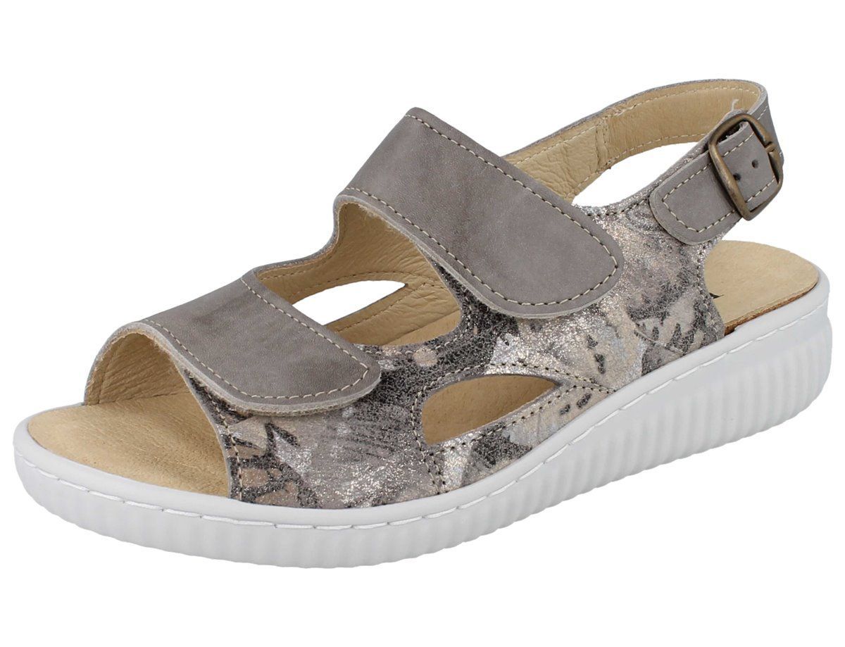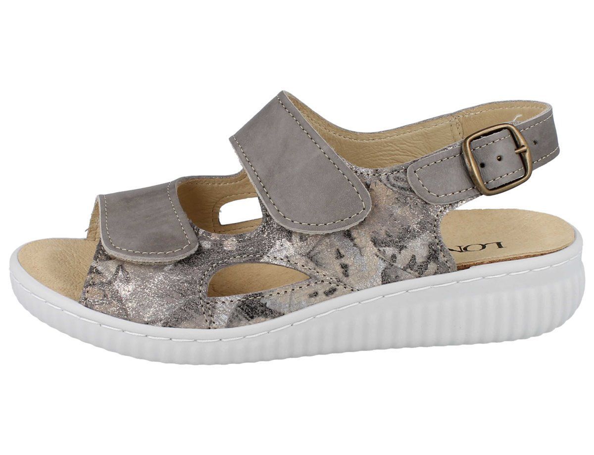 LONGO Damen Sandale Sandalette Klettsandale beige gris Glattleder bedruckt