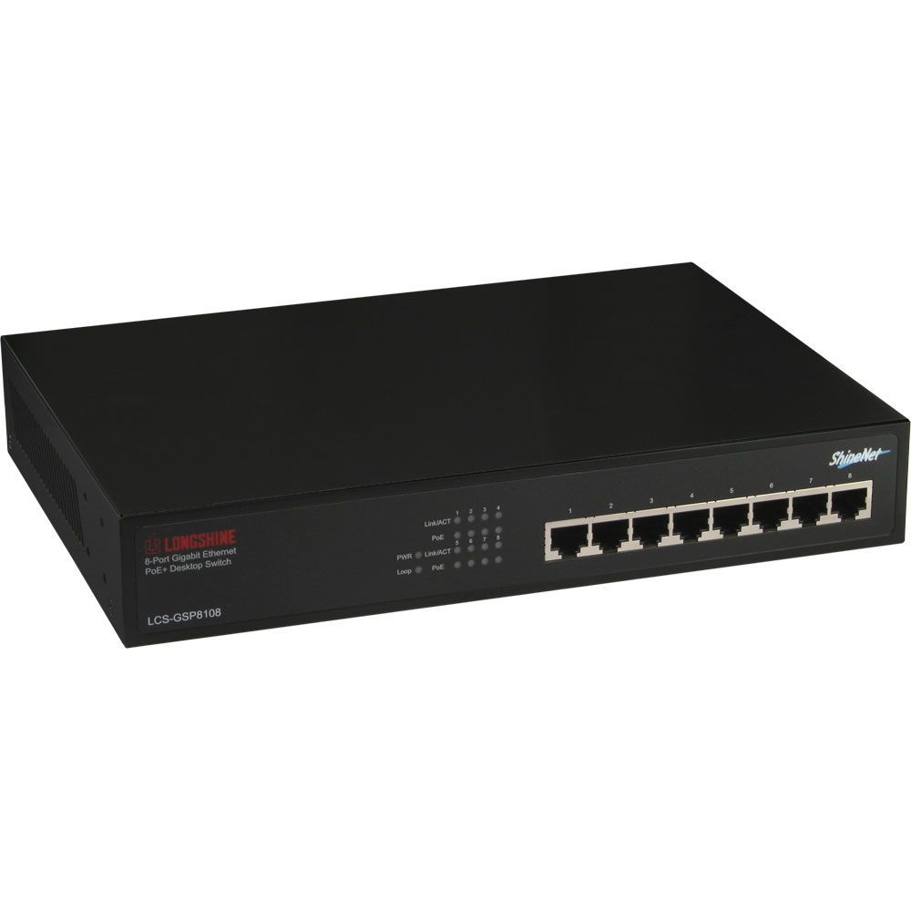 Longshine Longshine Gigabit Switch, 8-Port, LCS-GSP8108, Desktop, PoE+, lüfterlos