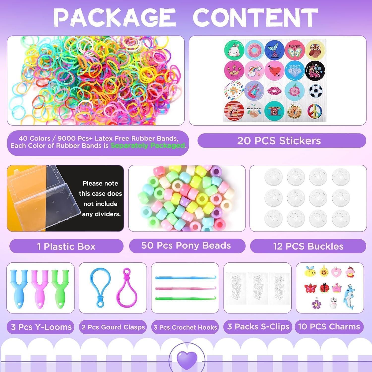 Loom Bänder Set 9000+ mit Perlen Anhänger, 40 Farben, DIY Kinder Mädchen