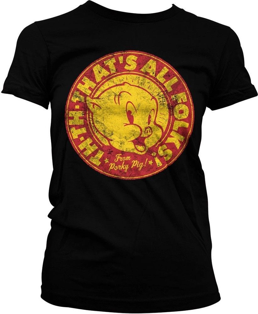 Looney Tunes Porky Pig That's All Folks! Girly Tee Damen T-Shirt Black