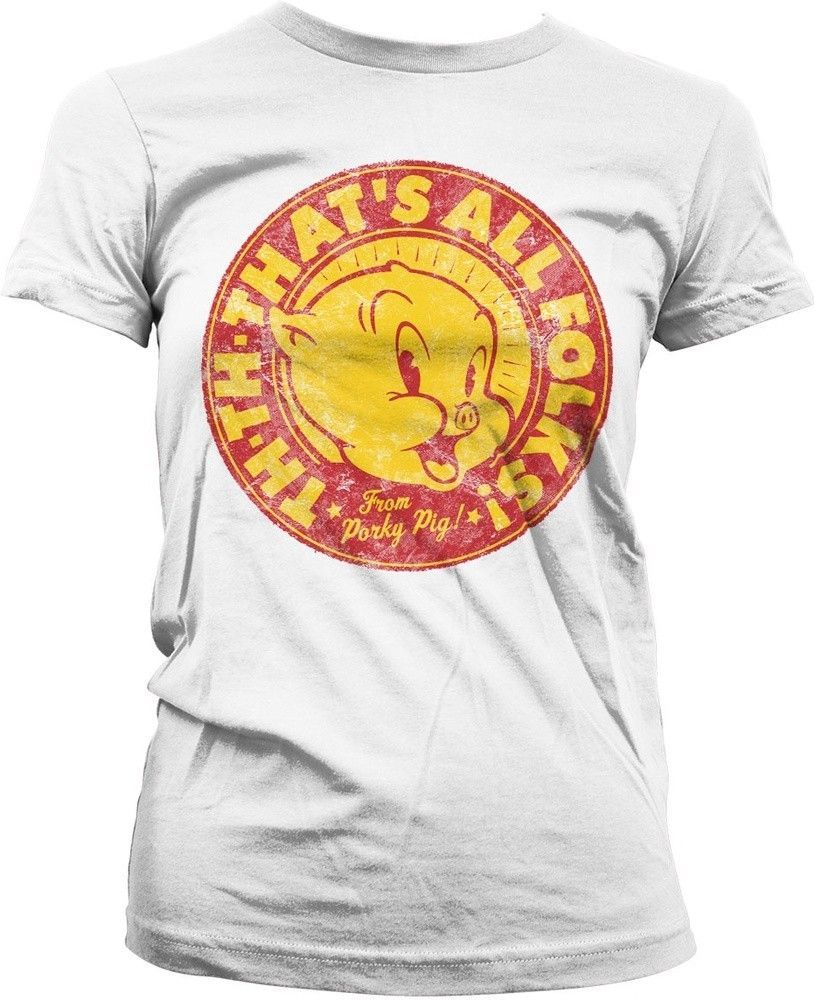 Looney Tunes Porky Pig That's All Folks! Girly Tee Damen T-Shirt White