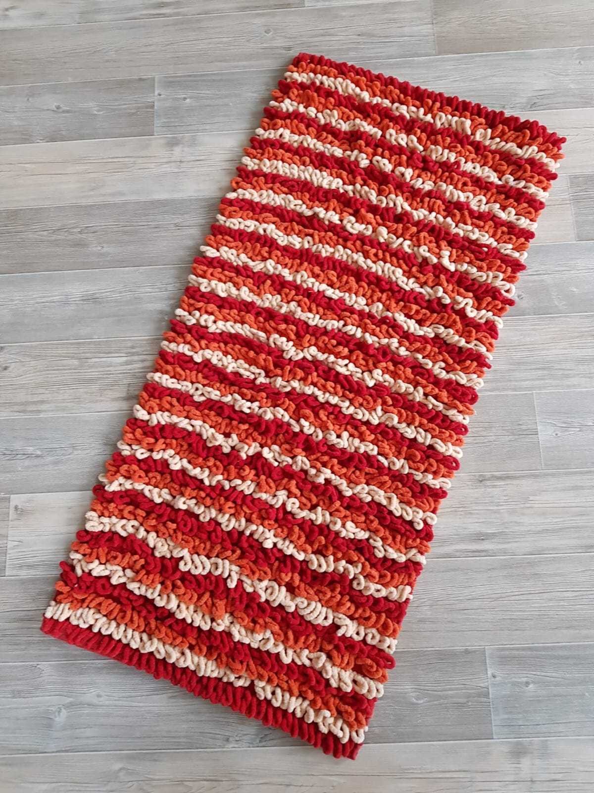 Loop Handweb Teppich rot weiss ca. 50x100cm Loops 57 (Gr. 50 x 80 cm)