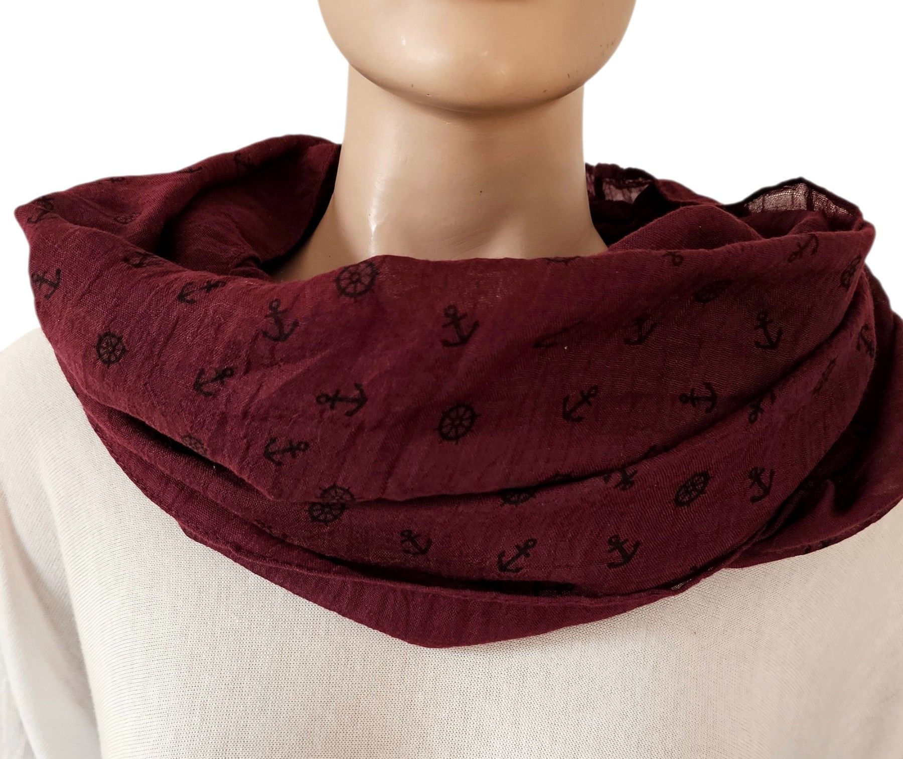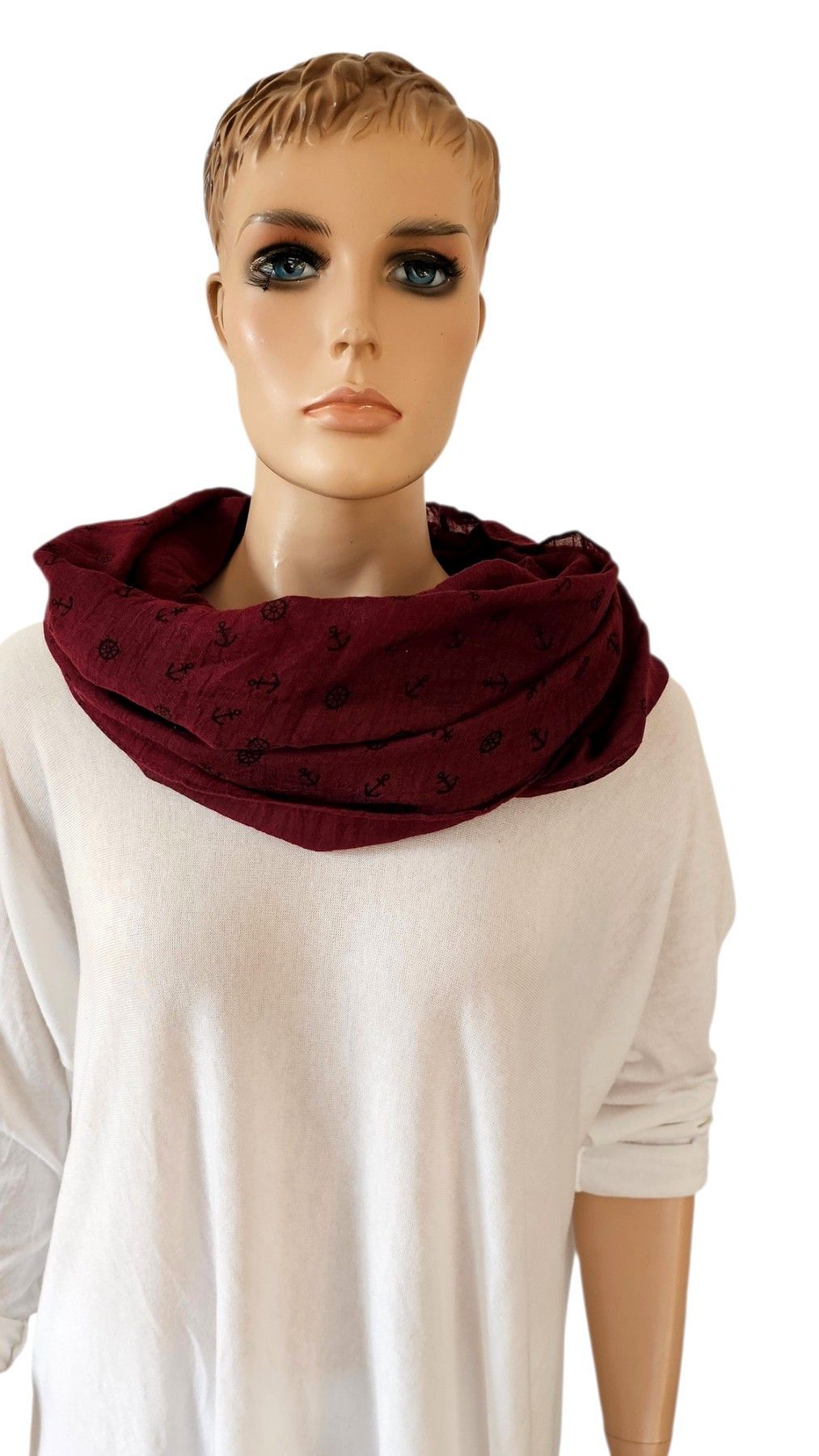 Loop Schal Halstuch Schlauchschal Baumw. Viskose maritimer Print dunkles Weinrot