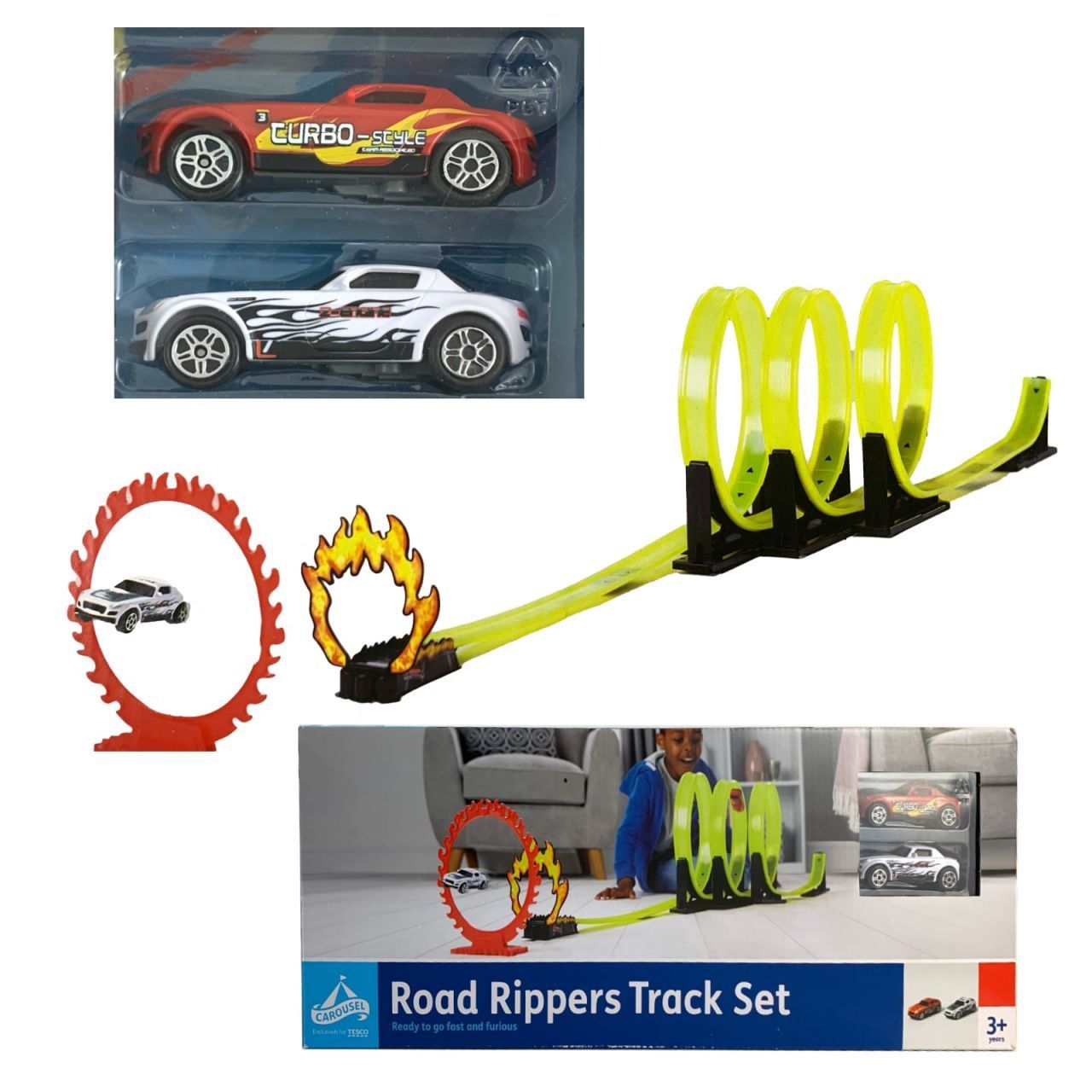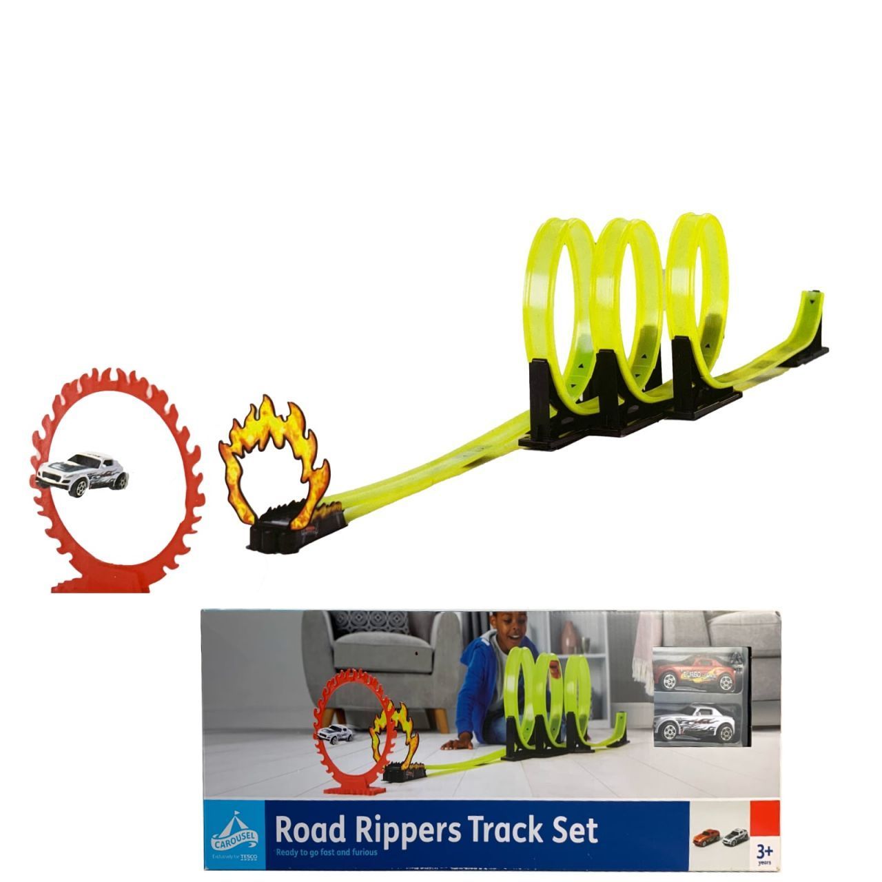 Looping Rennbahn Road Rippers Track Set mit Feuerreif und 2 Autos