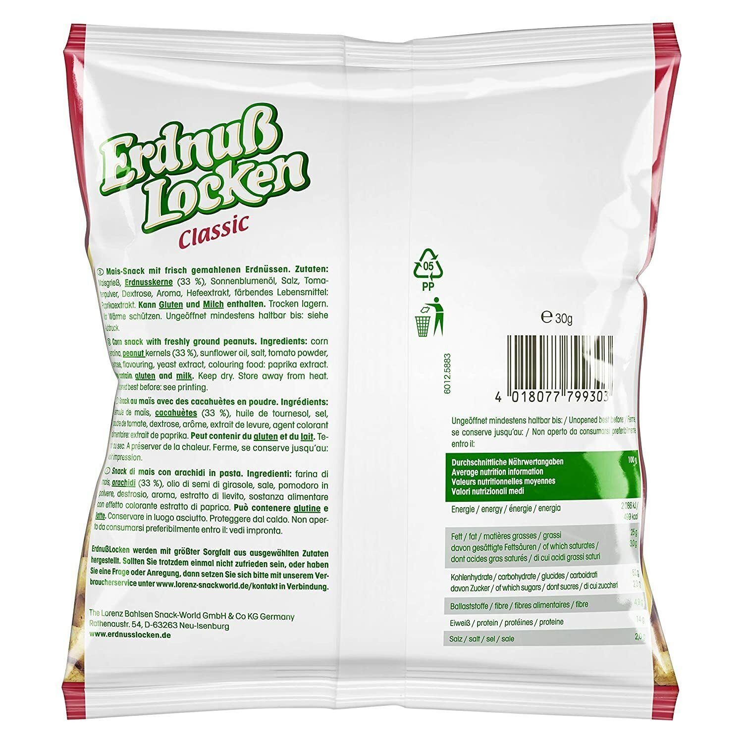 Lorenz Lorenz Erdnuß Locken Classic Flips Mais Snack knabbern Party 20 x 30g 20er Pack