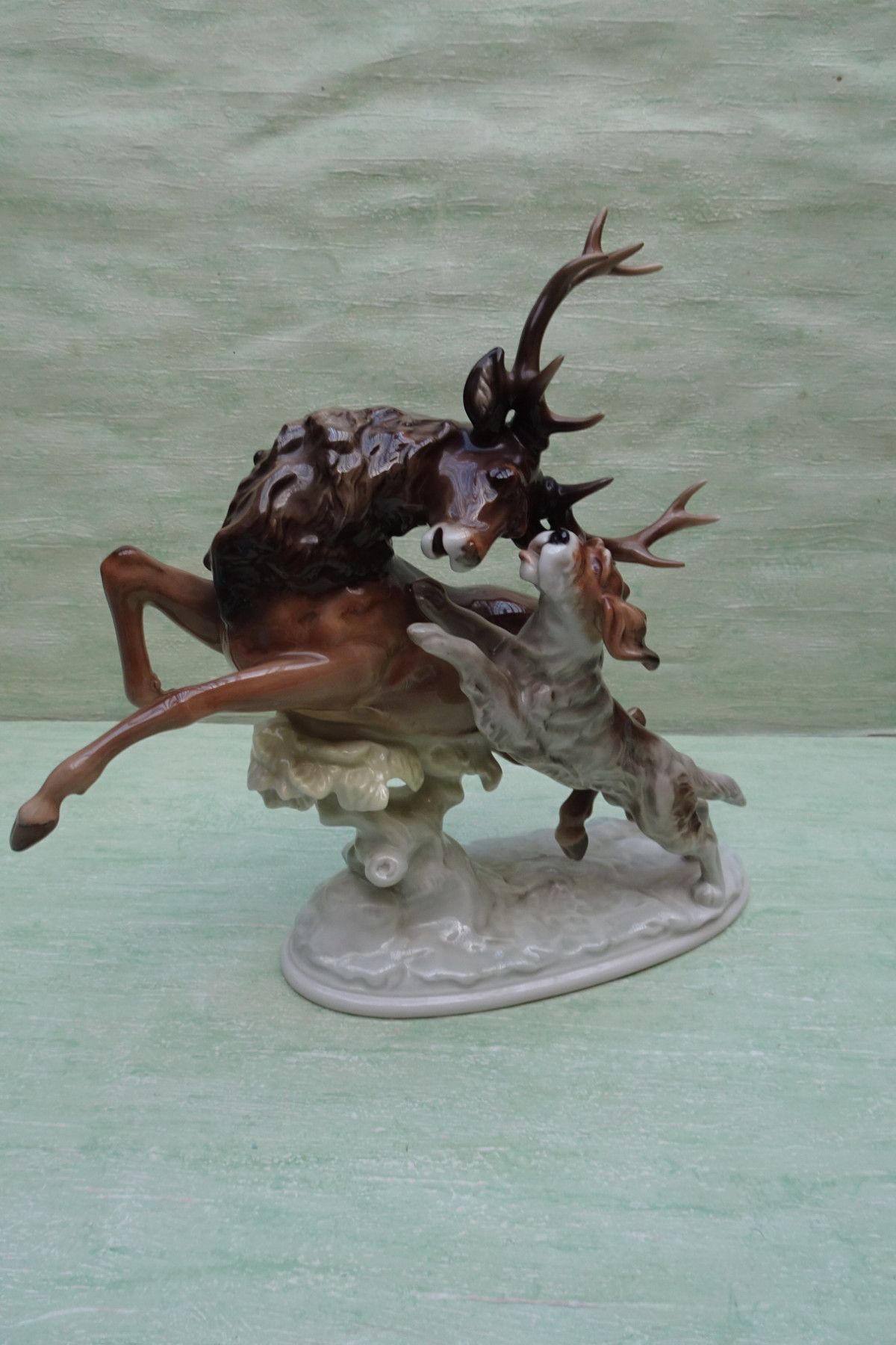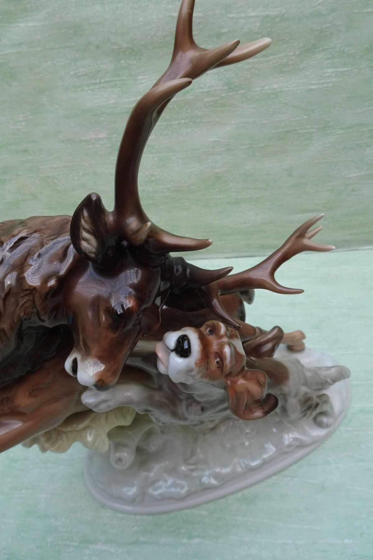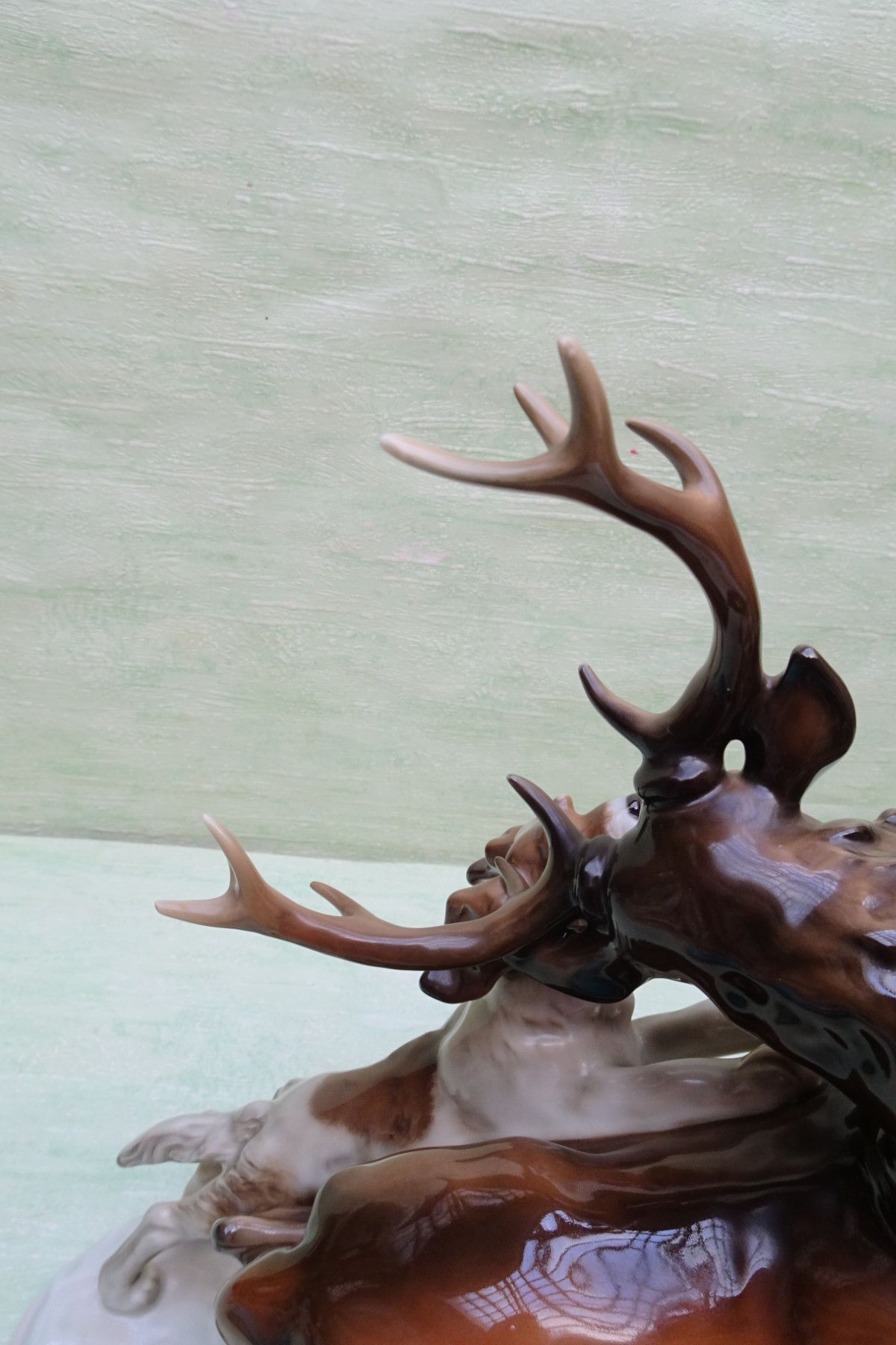 Lorenz Hutschenreuther "blau Kunstabteilung Hirsch & Jagdhund ca 32x33cm
