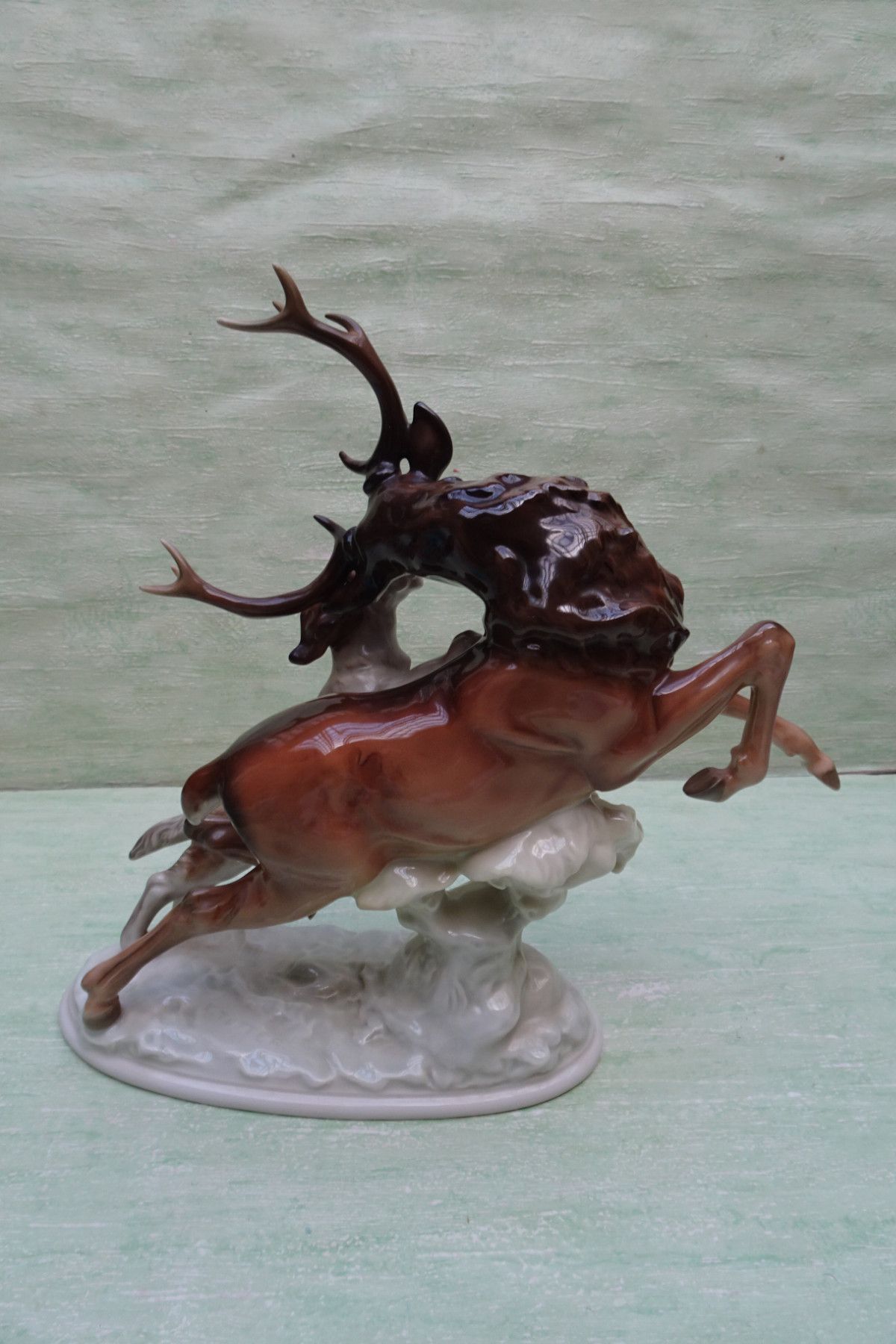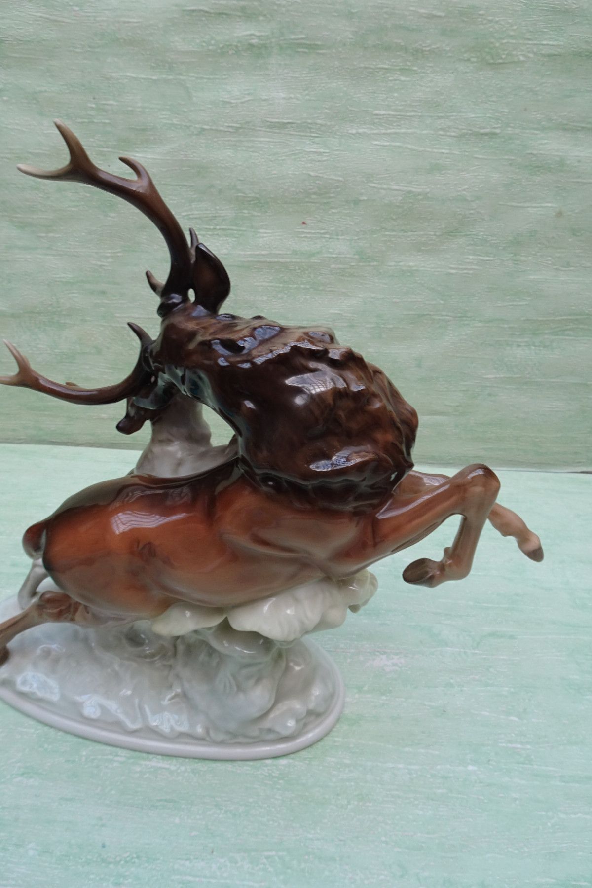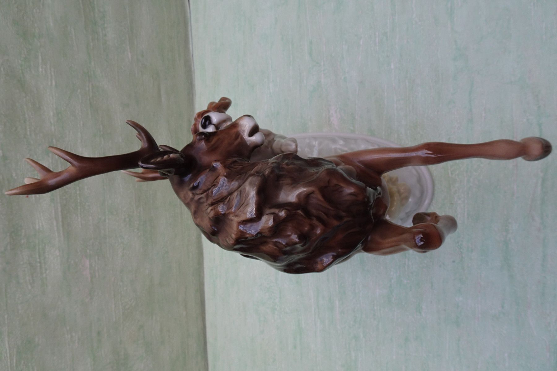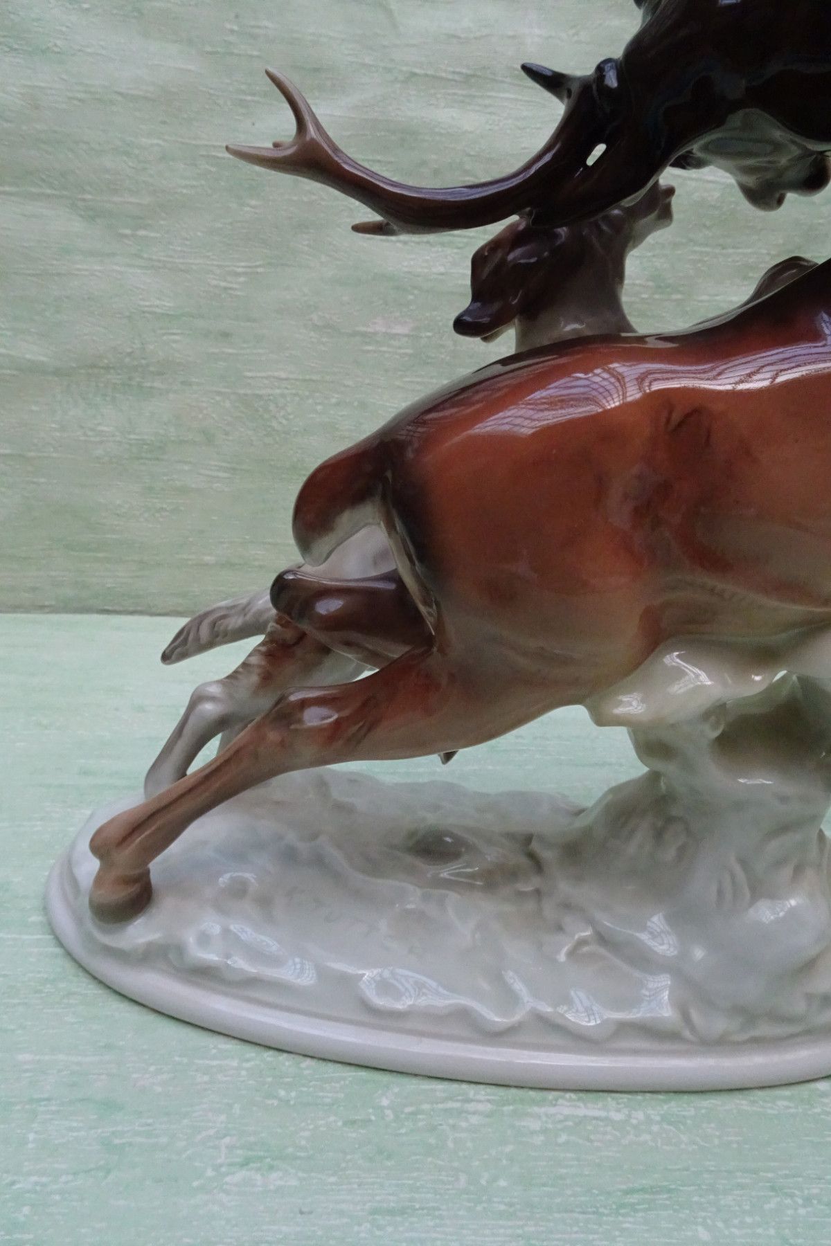 Lorenz Hutschenreuther "blau Kunstabteilung Hirsch & Jagdhund ca 32x33cm