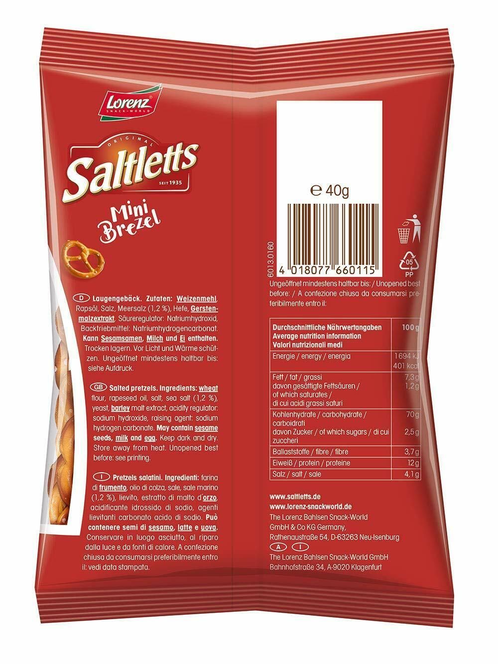 Lorenz Lorenz Saltletts Mini Brezel Snack Knabbern Naschen Party 20 x 40g 20er Pack