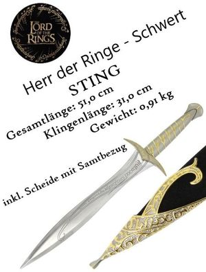 NEU Herr der Ringe Schwert STING Bilbo 51cm groß für Cosplay Sammler Fans Dolch