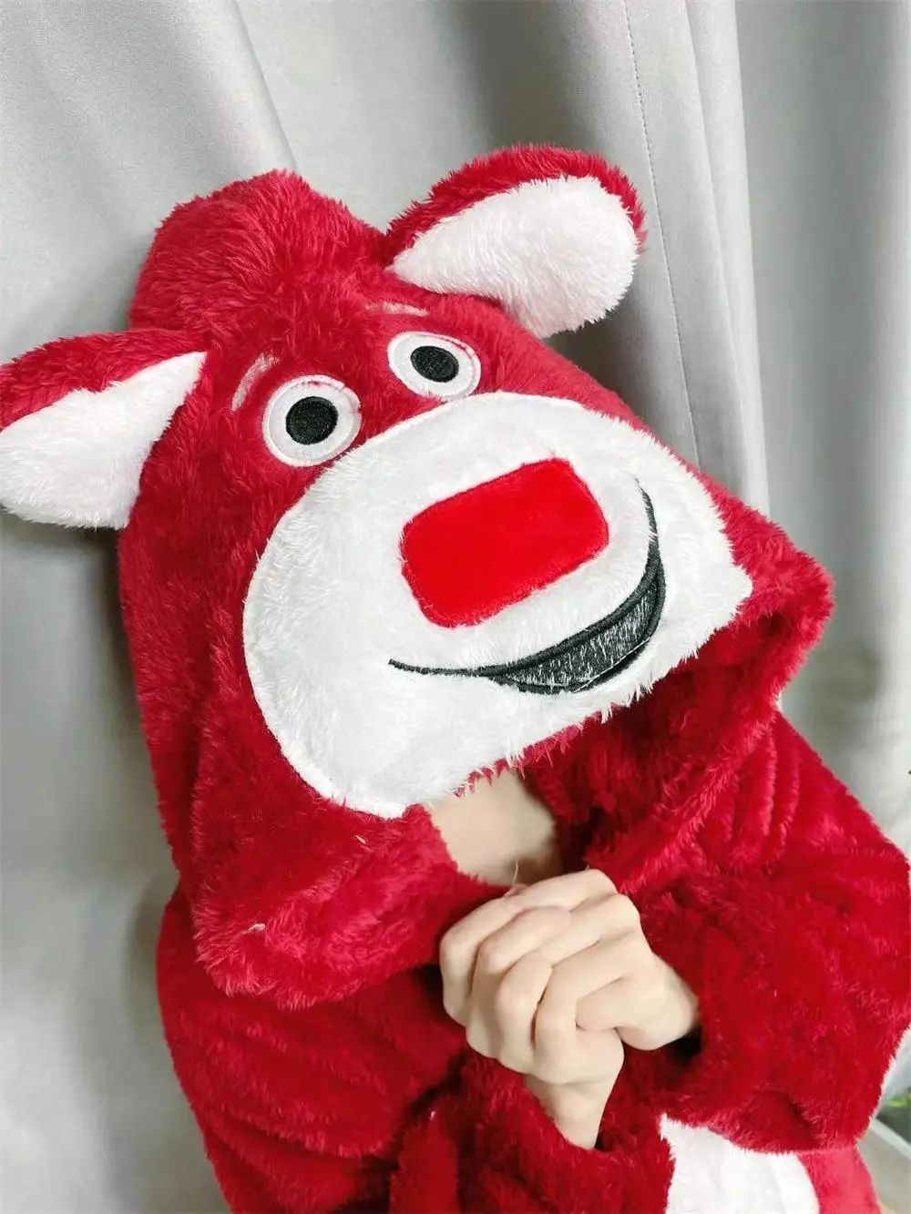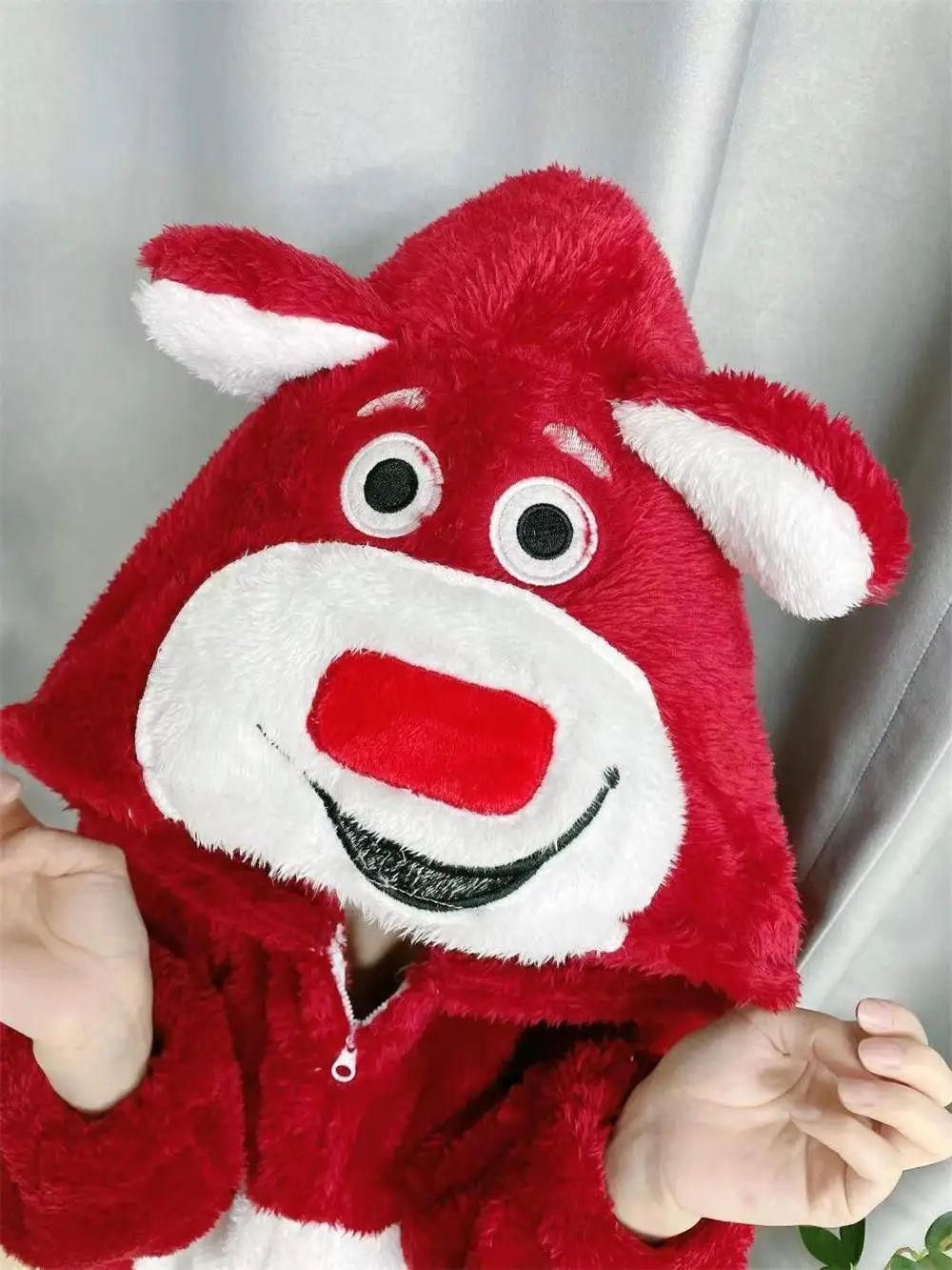 Lotso Erdbeerbar MINISO Onesie Erwachsene Tier Cosplay Pyjamas Plusch Halloween
