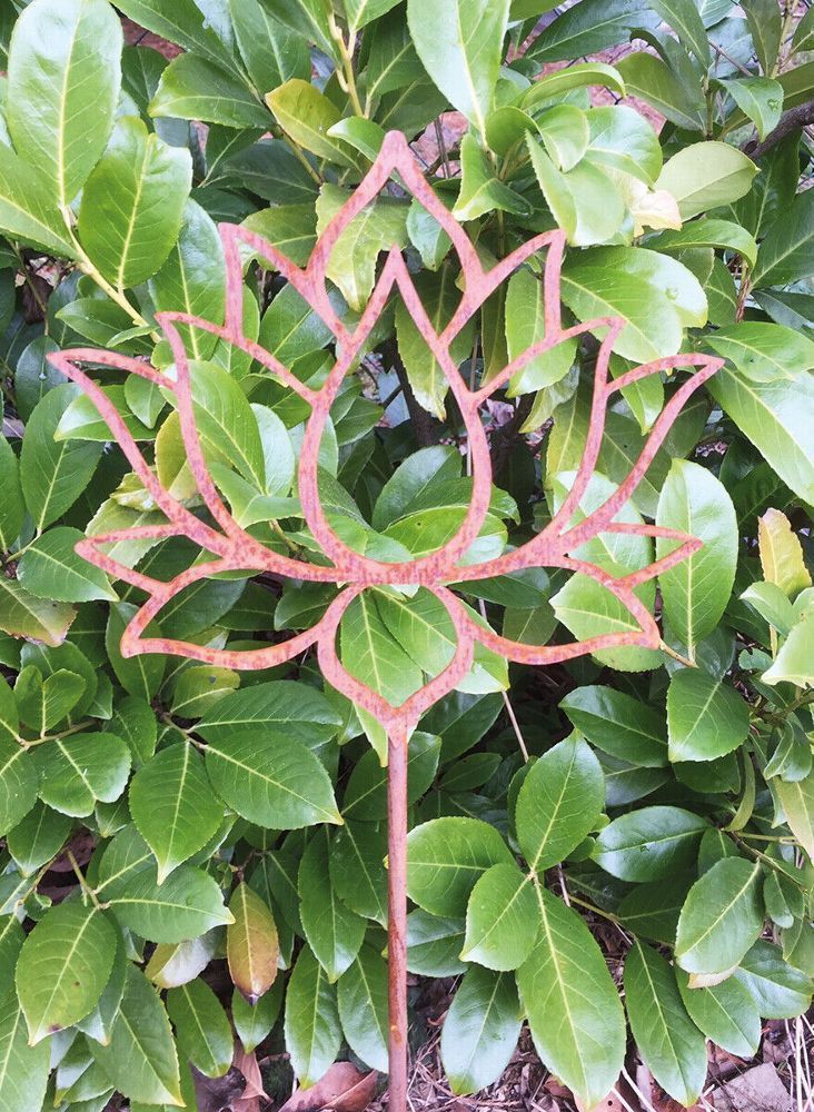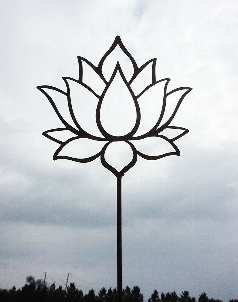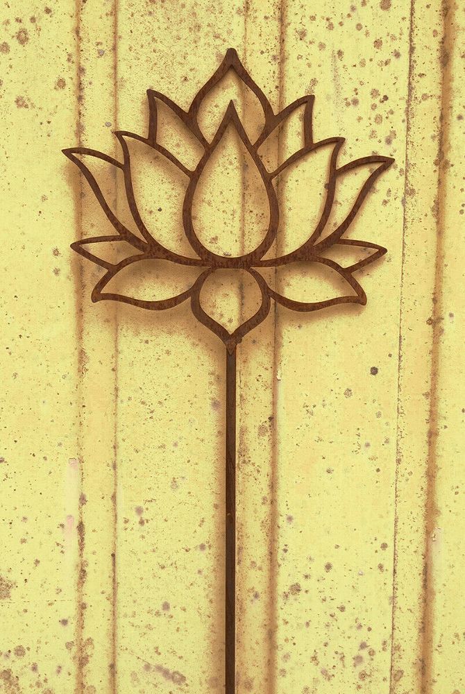 Lotus Blume Blüte 18x20cm + Stab Gartenstecker Edelrost Rost Yoga Seerose Rose