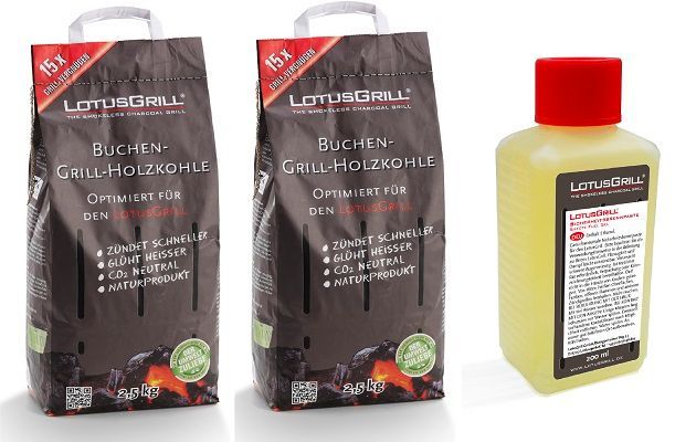 LotusGrill LotusGrill Anzündset Nr.7 - 2x Buchenholzkohle 2,5kg UND 1x Brennpaste 200ml